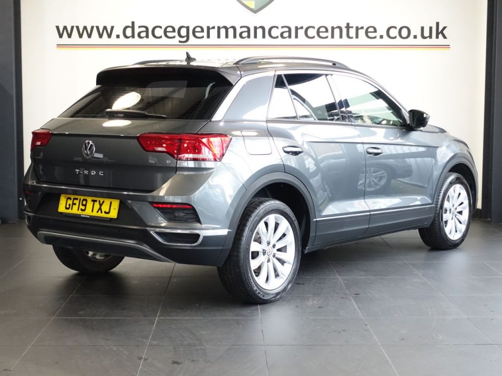 Quality Used 2019 GREY VOLKSWAGEN T-ROC SUV 1.0 TSI GPF SE SUV 5dr Petrol Manual Euro 6 (s/s) (115 ps) (first registered on 2019-03-29) for sale in Altrincham. This fantastic SUV car is located at Dace German Car Centre, 309 Manchester Road, Stockport, Cheshire, SK4 5EA – near Altrincham and listed with price tag of £12340.00 GBP.