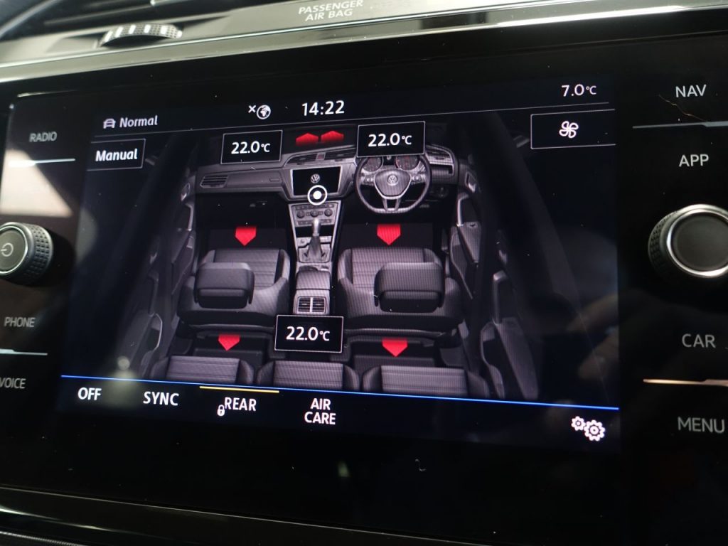 Other features: 2 Single Seats in the 3rd Row – Can Be Folded Flush into Floor of Luggage Compartment,3 Single Seats in the 2nd Row with Forward and Backward Adjustments – Foldable,3 Zone Electronic Climate Control with Automatic Air Recirculation,5 Rear Head Restraints,Ambient Lighting,Armrest – Front Centre with Storage Compartment,Automatic Dimming Interior Rear View Mirror,Black Lead Grey Look Decorative Inserts in Dash – Centre Console and Front Doors,Black Rooflining,Carpet Mats – Front and Rear,Centre Armrest 2nd Row,Chrome Plated Instrument Surrounds,Convenience Pack,Cup Holders – Front x2,Driver Profile Selection,Drivers and Front Passengers Four Way Adjustable Head Restraints,Drivers and Front Passengers Safety Optimised Head Restraints,Drivers and Front Passengers Under Seat Drawer,Drivers Seat Height Adjustment,Folding Table on Back of Front Seats,Front Comfort Seats with Lumbar Adjustment,Front Passengers Seat Folding Backrest,Front Passengers Seat Height Adjustment,Front Seat Back Storage Pockets,Galvanised Bod 18in Alloy Wheels – Marseille,Black Front Air Intake and Radiator Grille,Body Coloured Bumpers Front and Rear,Body Coloured Door Handles,Body Coloured Door Mirrors with Integrated Indicators Incorporating LED Technology,Chrome Trimmed Lower Front Bumper,Chrome Trimmed Side Window Surrounds,Chrome Twin Exhaust Tailpipe,Chrome-Plated Radiator Grille Louvre Inserts,Electric Windows – Front and Rear,Electrically Foldable Door Mirrors – Door Mirror Puddle Lights and Reverse Activated Kerb View Adjustment on Passengers Door Mirror,Front Seats with R-Line Logo on Rear Seat Backrest,Gloss Black B Pillar,Mirror Pack,R-Line Styling Pack,Rear Tinted Glass from B Pillar Backwards – Approx 65 Percent Tinted,Roof Rails – Silver Anodised,Unique R-Line Badging 2 Three Point Seat Belts in the 3rd Row,3 Three Point Seat Belts in the 2nd Row with Height Adjustment on Outer Seats,ABS – Anti-Lock Braking System with HBA – Hydraulic Brake Assist,Adaptive Cruise Control,Airbags,Alarm,Automatic Post-Collision Braking System,Driver Alert System,Electronic Engine Immobiliser,Electronic Parking Brake with Auto Hold Function,ESC – Electronic Stability Control including EDL – Electronic Differential Lock and ASR – Traction Control,First Aid Kit and Warning Triangle,Front Assist,Front Three Point Seat Belts with Height Adjustment,Hill Hold Function,ISOFIX Child Seat Preparation All Rear Seats 2nd and 3rd Row,Keyless Entry – with Hands Free Tailgate Opening,Multifunction Computer,Parking Sensors – Front and Rear,Pre-Crash Preventive Occupant Protection,Rear Screen Wash-Wipe with Intermittent Wipe,Remote Central Locking with 2 Remote Folding Keys,Speedo and Rev Counter – Electronic Odometer – Trip – Service Interval Display – Exterior Temperature Gauge and Fuel Gauge,Two-Tone Horn Automatic Coming-Leaving Home Lighting Function,Dusk Sensor – Automatic Driving Lights,Halogen Clear Headlights – Range Adjustable with Daytime Running Lights,High Level 3rd Brake Light,Indium Grey,LED Premium Headlights,Power Assisted Steering – Speed Sensitive