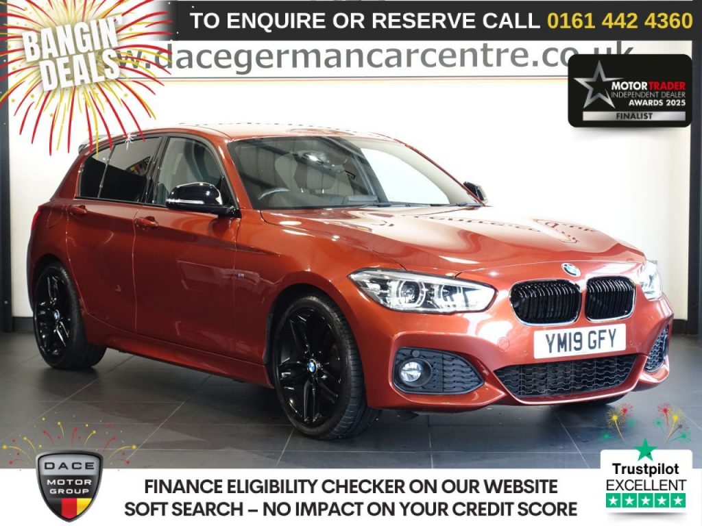 Quality Used 2019 ORANGE BMW 1 SERIES Hatchback 2.0 120i GPF M Sport Hatchback 5dr Petrol Auto Euro 6 (s/s) (184 ps) (first registered on 2019-03-28) for sale in Altrincham. This fantastic Hatchback car is located at Dace German Car Centre, 309 Manchester Road, Stockport, Cheshire, SK4 5EA – near Altrincham and listed with price tag of £15289.00 GBP.
