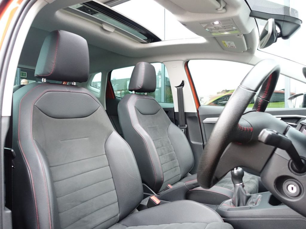 Other features: Auto Dimming Rear View Mirror,Digital Cockpit,Door and Steering Wheel Decorative Inserts – Ice Metal,Driver Sunvisor with Mirror and Card Holder,Dual Zone Climate Control,Dust and Pollen Filter,Front Courtesy Light with Front Reading Lights,Height Adjustable Front Passenger Seat,Height-Adjustable Drivers Seat,Instrument Lighting with Brightness Control,Leather Handbrake,Leatherette Dashboard,Multi Coloured Ambient Lighting,Passenger Sunvisor with Mirror,Perforated Leather Flat-Bottomed Steering Wheel with Red Stitching and FR Logo with Leather Gear Knob,Rain Sensing Wipers,Rear Fog Light,Split Folding Rear Seats – 60-40,Third Rear Headrest,Two Height-Adjustable Front and Rear Headrests 18in Alloy Wheels – Performance – Bi-Coloured Machined,Black Window Trim,Brilliant Black Painted Door Mirrors,Dark Tinted Rear Windows,Electric Front Windows,Electrically Adjustable Folding and Heated Door Mirrors,Emergency Tyre Repair Kit,Exclusive FR Rear Bumpers,Exhaust Pipe – Twin,Locking Wheel Bolts,Panoramic Sunroof,Radiator Grille Frame in Chrome,SEAT Logo Tailgate Release Alarm – Perimeter and Interior Monitoring with Back-up Horn and Tow-Away Protection,Anti-Lock Braking System – ABS,Cruise Control,Digital Clock,Driver and Front Passenger Airbags,Electronic Engine Immobiliser,ESC – Electronic Stability Control with EBA – Emergency Brake Assist,Front and Rear Seatbelt Reminders,Front Assist,Front Passenger Airbag De-Activation,Front Side and Curtain Airbags,Gearshift Indicator,Hill Hold Control,ISOFIX Points in Outer Rear Seats with Top Tether Anchorage Points,Low Fuel Warning Light,Multi-Collision Braking System,Outside Temperature Gauge,RPM Counter,SEAT Drive Profile,Three-Point Seatbelts on All Rear Seats,Tiredness Recognition System,Trip Computer,Tyre Pressure Monitoring System Auto-Headlights,Coming Home – Leaving Home Headlight Function,Eclipse Orange,Electro-Mechanical Power Steering – Speed-Sensitive,Front Fog Lights with Cornering Function,Full LED Headlights,LED Daytime Running Lights,LED Taillights,Lights Left On Warning Buzzer,Microsuede – Black with Red Stitching,Rear Parking Sensors,Sports Suspension