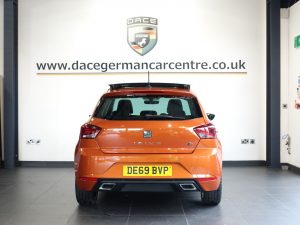 Quality Used 2019 ORANGE SEAT IBIZA Hatchback 1.0 TSI FR Sport Hatchback 5dr Petrol Manual Euro 6 (s/s) GPF (95 ps) (first registered on 2019-09-25) for sale in Altrincham. This fantastic Hatchback car is located at Dace German Car Centre, 309 Manchester Road, Stockport, Cheshire, SK4 5EA – near Altrincham and listed with price tag of £11970.00 GBP.