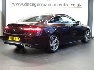 Quality Used 2019 RED MERCEDES-BENZ E-CLASS Coupe 2.0 E220d AMG Line Coupe 2dr Diesel G-Tronic+ Euro 6 (s/s) (194 ps) (first registered on 2019-09-30) for sale in Altrincham. This fantastic Coupe car is located at Dace German Car Centre, 309 Manchester Road, Stockport, Cheshire, SK4 5EA – near Altrincham and listed with price tag of £18440.00 GBP.
