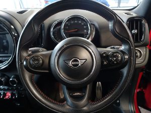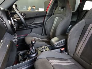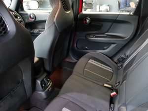 Other features: 4 Lashing Eyes in Luggage Compartment,Air Conditioning – Manual,Chrome Highlights,Colour Line – Carbon Black,Cupholders,Door Storage Compartments,Folding Rear Seats 40-20-40,Glove Compartment,Headliner – Anthracite,Instrument Cluster,Interior Lighting,Interior Lighting – Including Reading Lights,Interior Surface – Hazy Grey,John Cooper Works Leather Steering Wheel,John Cooper Works Sport Seats,Leatherette Gearshift Lever and Handbrake Gaiters,LED Reading Lights – Vanity Mirror Lights – Front Footwell Lights – Spotlights on Front Seats,Mechanical Seat Adjustment,MINI Excitement Pack,Multifunction Controls for Steering Wheel,Passenger Seat Height Adjustable,Split Rear Doors,Start-Stop Toggle including Keyless Go,Steering Column Height and Length Adjustment,Sun Visor with Vanity Mirrors,Tool Kit in Luggage Compartment 18in Alloy Wheels – John Cooper Works Thrill Spoke,Electric Windows,Exhaust Tailpipe – Left with Chrome Finisher,Fuel Filler Cap in Body Colour,Heated Rear Window,Heated Windscreen Washer Jets,John Cooper Works Aerodynamic Kit,John Cooper Works Roof Spoiler,Model Logo,Rear Fog Light,Roof and Mirror Caps – Body-Colour,Roof Rails – Silver,Security Locking Wheel Bolts,Side Scuttle Panels with Integrated Indicators,Sun-Heat Protection Glass,White Direction Indicators Lights 3 Point Seatbelts on all Seats,Active Guard – Automatic Emergency Braking,Airbags,Alarm System,Anti-Lock Braking System – ABS,Auto Drive Away Locking,Cruise Control with Brake Function,Dead-Locking Function,Dynamic Brake Lights,Dynamic Stability Control – DSC,Electronic Handbrake,Electronic Vehicle Immobiliser,Gear-Change Indicator Display,On-Board Computer,Performance Control,Rear ISOFIX,Rear Parking Distance Control,Rear Window Wiper,Two-Tone Horn,Tyre Pressure Monitoring System Chili Red,Comfort Pack,Daytime Driving Lights,Dinamica-Cloth – Carbon Black,Electro-Mechanical Steering with Speed Dependant Steering Assistance,Heated Front Windscreen,Rain Sensor and Automatic Headlight Activation,Roof and Mirror Caps – Black