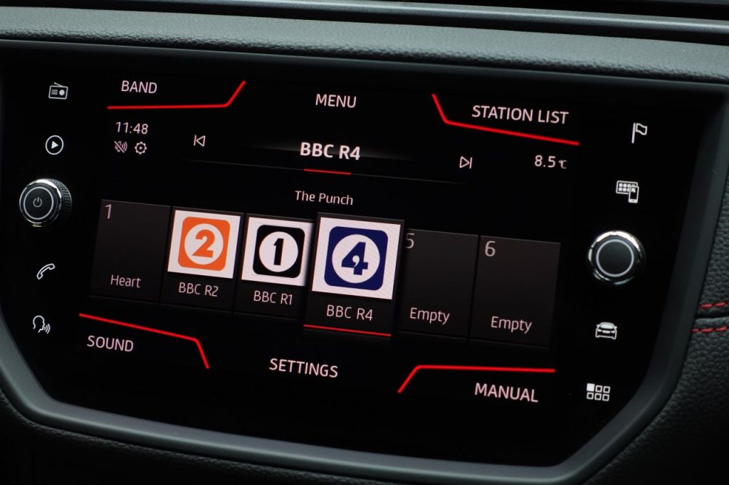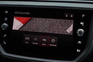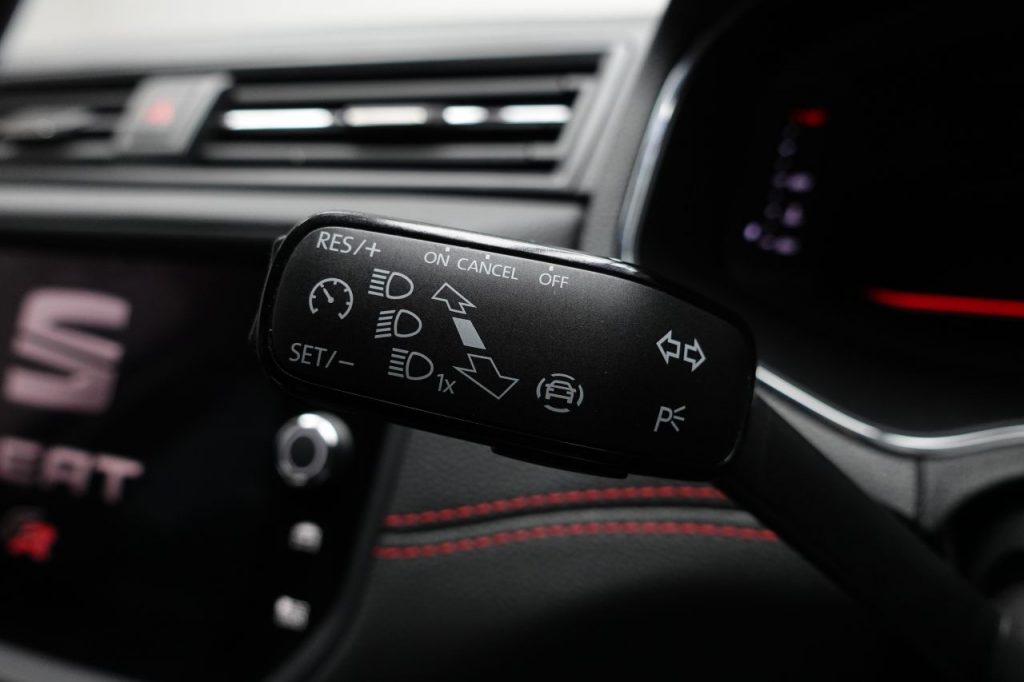 Other features: Auto Dimming Rear View Mirror,Digital Cockpit,Door and Steering Wheel Decorative Inserts – Ice Metal,Driver Sunvisor with Mirror and Card Holder,Dual Zone Climate Control,Dust and Pollen Filter,Front Courtesy Light with Front Reading Lights,Height Adjustable Front Passenger Seat,Height-Adjustable Drivers Seat,Instrument Lighting with Brightness Control,Leather Handbrake,Leatherette Dashboard,Multi Coloured Ambient Lighting,Passenger Sunvisor with Mirror,Perforated Leather Flat-Bottomed Steering Wheel with Red Stitching and FR Logo with Leather Gear Knob,Rain Sensing Wipers,Rear Fog Light,Split Folding Rear Seats – 60-40,Third Rear Headrest,Two Height-Adjustable Front and Rear Headrests 18in Alloy Wheels – Performance – Bi-Coloured Machined,Black Window Trim,Brilliant Black Painted Door Mirrors,Dark Tinted Rear Windows,Electric Front Windows,Electrically Adjustable Folding and Heated Door Mirrors,Emergency Tyre Repair Kit,Exclusive FR Rear Bumpers,Exhaust Pipe – Twin,Locking Wheel Bolts,Radiator Grille Frame in Chrome,SEAT Logo Tailgate Release Alarm – Perimeter and Interior Monitoring with Back-up Horn and Tow-Away Protection,Anti-Lock Braking System – ABS,Cruise Control,Digital Clock,Driver and Front Passenger Airbags,Electronic Engine Immobiliser,ESC – Electronic Stability Control with EBA – Emergency Brake Assist,Front and Rear Seatbelt Reminders,Front Assist,Front Passenger Airbag De-Activation,Front Side and Curtain Airbags,Gearshift Indicator,Hill Hold Control,ISOFIX Points in Outer Rear Seats with Top Tether Anchorage Points,Low Fuel Warning Light,Multi-Collision Braking System,Outside Temperature Gauge,RPM Counter,SEAT Drive Profile,Three-Point Seatbelts on All Rear Seats,Tiredness Recognition System,Trip Computer,Tyre Pressure Monitoring System Auto-Headlights,Coming Home – Leaving Home Headlight Function,Electro-Mechanical Power Steering – Speed-Sensitive,Front Fog Lights with Cornering Function,Full LED Headlights,LED Daytime Running Lights,LED Taillights,Lights Left On Warning Buzzer,Microsuede – Black with Red Stitching,Sports Suspension