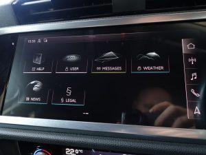 Other features: 3-Spoke Leather Multi-Function Steering Wheel – Height and Reach Adjustable,Adjustable Rear Seat Bench-Backrest,Aluminium Look Interior Elements,Audi Virtual Cockpit – 10.25in Display,Auto Dimming and Frameless Rear View Mirror,Cloth Headlining in Lunar Silver,Detail in Dashboard Around the MMI Touch Colour Display in Glass Look – Black with Surround in Aluminium Look,Door Sill Trims with Aluminium Inlay,Dual-Zone Electronic Climate Control,Front and Rear Floor Mats,Front Centre Armrest,Inlays – Micrometallic Silver,Interior Lighting,Luggage Compartment Sill Protection in Stainless Steel,Manual Seat Adjustment for Front Seats,Non-Smoking Package,Power Operated Tailgate,Tool Kit 18in Alloy Wheels – 5-Double-Arm Design,Aluminium Roof Rails,Aluminium Window Trims,Anti Theft Locking Wheel Bolts,B and C-Pillar Trim in High-Gloss Black,Body Coloured Door Mirrors,Bumpers in Full Body Colour Paint Finish,Door Mirrors – Electrically Folding – Adjustable and Heated with Integrated LED Side Indicators and Kerb-view Function for Passenger Side,Electric Windows – Front,Frame of Front Side Air Inlets in Selenite Silver – Matt,Front Spoiler in Selenite Silver – Matt,Grille Surround in Silver – Chrome,Grille Vertical Bars in Aluminium Silver – Matt,Radiator Grille – Titanium Black,Rear Diffuser in Selenite Silver – Matt,Tyre Repair Kit,Windscreen in Acoustic Glazing 6-Airbag System,Anti-Theft Alarm,Audi Drive Select,Audi Pre-Sense Front with Pedestrian and Cyclist Recognition,Audi Side Assist,Camera-Based Traffic Sign Recognition,Cruise Control with Speed Limiter,Electromechanical Parking Brake,Electronically Operated Child Locks,ESC – Electronic Stabilisation Control inc ABS – ASR and EDL,First Aid Kit and Warning Triangle,Hill Descent Control,Hill Hold Assist,ISOFIX Child Seat Mounting for the Front Passenger Seat with Front Passenger Airbag Deactivation and ISOFIX Child Seat Mounting and Top Tether for the Outer Rear Seats,Lane Departure Warning,Pre-Sense Basic,Rear Parking Sensors,Seat Belt Monitoring,Tyre Pressure Warning Light,Voice Control System with Natural Language Interaction Floret Silver,LED Headlights with LED Daytime Running Lights and Dynamic Rear Indicator,LED Rear Lights,Light and Rain Sensor,Progressive Steering,Standard Suspension