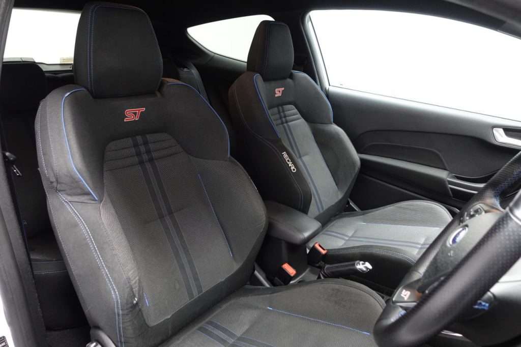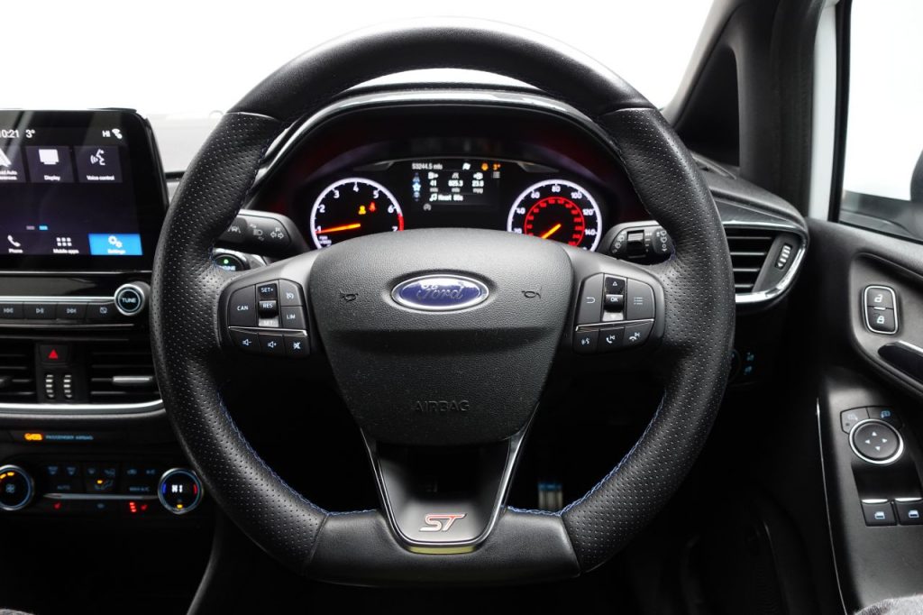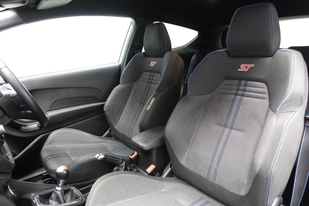 Other features: Adjustable Boot Load Floor,Air Conditioning – Manual,Blue Front Seat Belts,Centre Console with Armrest and Illuminated Cupholders,Courtesy Light – Ambient LED Courtesy Lighting,Courtesy Light – Front Map Light and Rear – Overhead LED,Door Edge Protectors,Door Lever – Chrome Finish,Drivers Seat Lumbar Support and Passenger Seat Lumbar Support,Floor Mats – Front and Rear with Blue Stitching,Front Seat – Drivers Manual Height and Fore-Aft Adjustment,Gearshift Knob – Leather-Trimmed with Aluminium Insert,Glovebox – Illuminated,Headliner – Black Woven,Heated Driver and Passenger Seats,Heated Steering Wheel,Keyless Start with Ford Power Start Button,Leather-Trimmed Handbrake,MyKey,Overhead Console – Sunglasses Holder,Rear Fog Lamps,Rear Seat – 60-40 Split Back and Cushion,Seats – Front Recaro Sports,Sports Pedals,Steering Column – Rake and Reach Adjustment,Steering Wheel – 3-spoke Flat Bottom – Leather Trimmed,Warning Triangle Storage 17in Alloy Wheels – ST 5 Spoke – Matt Black – Machined Finish,18in Alloy Wheels – ST 5 Spoke – Magnetic – Machined Finish,Black Belt Line Finisher,Door Handles – Body Colour,Door Mirrors – Heated – Electric – Integrated Side Indicators – Body Coloured,Electric Windows – Front,Front Bumper – Unique ST,Front Door Threshold Plates – Ford Performance ST,Front Upper Grille – Unique ST,Large Rear Spoiler – Body Colour with Centre High Mounted Stop Light,Opening Panorama Roof,Quickclear Heated Windscreen,Rear Bumper – Unique ST with Sport Diffuser,Rear Privacy Glass,ST Badge – Front and Rear,ST Side Skirt Body Mouldings – Body Colour,Tyre Repair Kit,Wipers – Standard with 6 Speed Interval Settings Airbags – Driver and Front Passenger,Airbags – Front and Rear Side Curtain,Airbags – Front Side Impact,Anti-Lock Braking System – ABS with Electronic Brake Force Distribution – EBD,City Pack,Cruise Control,Driver Assistance Pack,Emergency Brake Warning – Automatic Hazard Warning Lights,Enhanced Electronic Stability Control – ESC with Traction Control – Emergency Brake Assist – EBA – Hill Start Assist – HSA and Trailer Sway Control,Ford Easy-Fuel Capless Refuelling System,Ford KeyFree System,IPS – Intelligent Protection System,NCAP Pack,Remote Central-Double Locking,Seats – ISOFIX Mounting Provision for Child Seats,Selectable Drive Modes – Normal – Sport – Track,Tailgate Wash-Wipe,Thatcham Category 1 Alarm,Trip Computer,Tyre Pressure Monitoring System – TPMS B and O PLAY In-Car Audio Premium Sound System with Ford SYNC 3 Navigation System and FordPass Connect – Embedded Modem,Blind Spot Information System with Cross Traffic Alert,CD Player,EPAS – Electric Power Assisted Steering,Ford Navigation System with Ford SYNC 3 – Apple CarPlay and Android Auto and FordPass Connect – Embedded Modem,Frozen White,Full LED Headlamps,Gozil Fabric – Ebony-Blue,Headlights – Automatic On-Off,Headlights – Halogen Reflector with Grey Bezel and LED Daytime Running Lights,Magnetic,Moondust Silver,Performance Blue,Race Red,Rear Lights – LED Night Signature,Rear View Camera,Shadow Black,Sliver Fox,ST Performance Pack,ST-Line Front Fog Lamps with Cornering Lights,Suspension – ST Sports