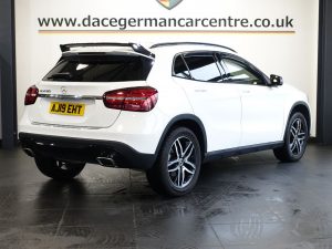 Quality Used 2019 WHITE MERCEDES-BENZ GLA SUV 1.6 GLA180 Urban Edition SUV 5dr Petrol 7G-DCT Euro 6 (s/s) (122 ps) (first registered on 2019-04-05) for sale in Altrincham. This fantastic SUV car is located at Dace German Car Centre, 309 Manchester Road, Stockport, Cheshire, SK4 5EA – near Altrincham and listed with price tag of £15270.00 GBP.
