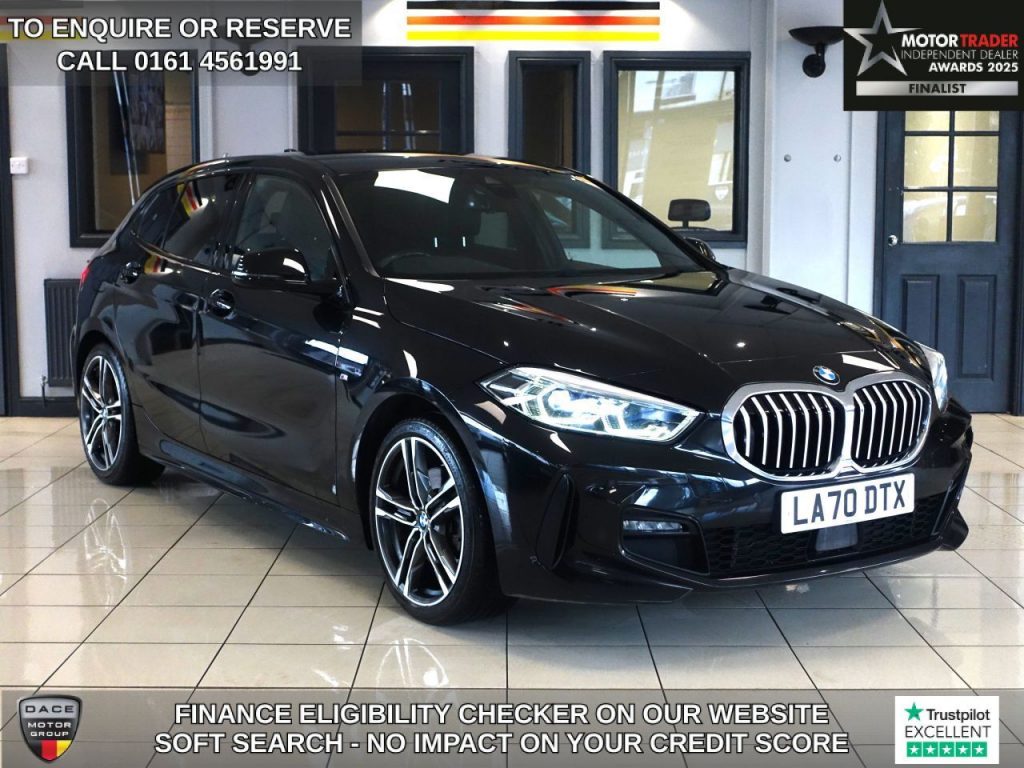 Quality Used 2020 BLACK BMW 1 SERIES Hatchback 118i M Sport 1.5 Hatchback 5dr Petrol DCT Euro 6 (first registered on 2020-12-31) for sale in Wilmslow. This fantastic Hatchback car is located at Dace Specialist Car Centre Stockport, 417-429 Buxton Road, Stockport, Cheshire, SK2 7HE – near Wilmslow and listed with price tag of £16240.00 GBP.