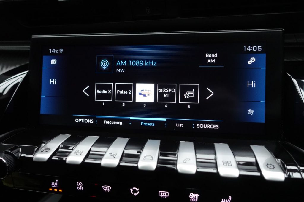 Other features: 1-3 – 2-3 Folding Rear Seat,Aikinite Contrast Stitching to Armrest – Front Centre Console – Door Panels and Dashboard Facia,Ambient Lighting to Storage Compartments – Footwells and Cupholders,Automatic Dual Zone Climate Control,Central Front Armrest with Butterfly-Wing Opening and Illuminated Storage Compartment,Dashboard – Front and Rear Door Panel Finish – Carbon Effect,Dashboard Facia – Intricate Stitch Detail,Driver and Front Passenger Seat Mechanical Height Adjustment,Driver and Passenger Heated Seats,Driver Plip Action,Eco-Coaching,Electric Driver and Passenger Lumbar Adjustment,Flocked Front Door Pocket Interior,Flocked Glove Box Interior,Front and Rear Carpet Mats in Black with Copper Stitch Detail,Front Central Console with Two Cup-Holders,Front Optimised Safety Headrests and Rear Retractable Headrests – x3 – Height-Adjustable,Front Windscreen Wiper with Magic Wash Cleaning System,Gear Lever – Satin Chrome,Interior LED Lighting Plus,Map Pockets on Front Seat Backs,Mistral Full-Grain Perforated Leathe 18in Alloy Wheels – Hirone Diamond Cut Two Tone,Dark Tinted Rear Side and Tailgate Windows,Door Handles – Body Coloured,Door Mirror Shells – Nera Black,Exhaust Effect Trim – Chrome,Fog Lights – Rear,Frameless Doors,Gloss Black B and C Pillar and Aerodynamic Deflector Trim,Gloss Black Rear Cluster Connecting Strip,GT Line Model Designation Badging,Heated Rear Windscreen with Integrated Antenna,LED Front Indicators,LED Side Indicator Lights Integrated into Door Mirrors,Locking Wheel Nuts,Model Designation Badges – Front and Rear,One-Touch Electric Front and Rear Windows with Pinch Protection,Panoramic Opening Glass Roof,Power Folding Door Mirrors with Blind Spot Detection Indicator,Power Folding Door Mirrors with Blind Spot Detection Indicator and Electrochrome-Auto Dimming Function,Radiator Grille – Chrome Chequered and Chrome Edge Trim,Rear Lower Bumper Gloss Black Diffuser Effect Trim,Rear Reversing Lights,Side Window Trim – Gloss Black,Stainless Steel Door Sill Scuff Plates,Steel Space Saver Spare Wheel,Tow ABS with Electronic Brakeforce Distribution – EBD,Active Bonnet,Airbags – Adaptive Driver and Front Passenger,Airbags – Curtain Front and Rear,Airbags – Driver and Front Passenger Side,Airbags – Driver and Front Passenger Side Thorax,Airbags – Passenger Deactivation Switch,Alarm – Perimetric – Volumetric with Lift and Tilt Sensor,Automatic Door Locking When Moving Off,Automatic Hazard Light Activation Upon Heavy Brake Application,Drive Assist Pack – ACC 30,EBA – Emergency Brake Assist,Electric Child Locking Functionality on Rear Windows and Doors,Electric Parking Brake,ESP – Electronic Stability Programme,Exterior Temperature Indicator with Ice Warning,Front Three-Point Retractable Seatbelts – Height-Adjustable with Pre-Tensioners and Force Limiters,Indirect Tyre Pressure Sensors,ISOFIX Child Seat Fittings – x3 – In the Front Passenger and Outer Rear Seats,Multifunction Trip Computer,PEUGEOT Open and Go System,Programmable Cruise Control and Speed Limiter,Rear Number Plate Lights x2,Rear Parking Sensors,Rear Amazonite Grey,Belomka Leather Effect and Ornis Cloth – Mistral,Celebes Blue,Cumulus Grey,Door Mirror Mounted LED Courtesy Approach Lights,Electric Power Steering with Reach and Rake Adjustable Steering Column,FOCAL Premium HIFI Speaker System,Full Grain Leather – Nappa Mistral,Full Grain Leather – Nappa Red,Full LED Headlights with Static Cornering Light Functionality,Headlights Left On Audible Warning,Hurricane Grey,LED Daytime Running Lights,Nera Black,Night Vision,Nimbus Grey,Pearlescent White,Rear Full LED 3D Peugeot Signature Claw Effect Lights – With Daylight Function,Self Levelling Headlights,SpeedCam – Danger Zones (1 Year Subscription From New),SpeedCam – Danger Zones (3 Year Subscription From New),Twilight Blue,Ultimate Red,Visio Park 2 – 360 Degree Colour Camera System and Automated Parking Assistance