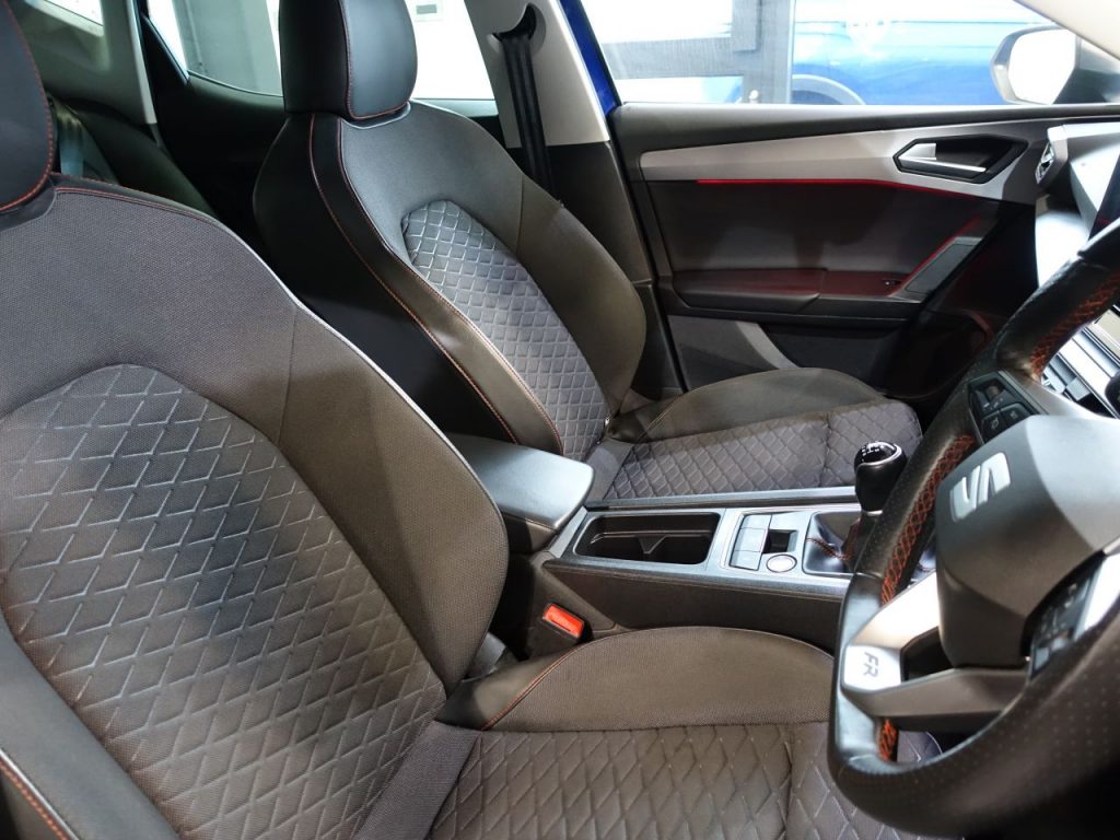 Other features: Ambient Lighting in Door Trim,Auto Dimming Rear View Mirror,Chrome Interior Detailing,Digital Cockpit,Driver and Passenger Seat Manual Height Adjustment,Driver and Passenger Seat with Lumbar Adjustment,Folding Boot Cover,Front and Rear Reading Lights – Four,Front Centre Armrest,Front Seat Back Storage Pockets,Height-Adjustable Front and Rear Headrests – with Third Headrest in Rear,Illuminated Front Door Sill,Interior Lighting,KESSY Go – Keyless Start,Leather Flat Bottomed – Perforated Steering Wheel with Red Stitching and FR Logo,Rain Sensing Wipers,Rear Bench Seats with 60-40 Split and Armrest,Rear Fog Light,Sunvisors with Illuminated Mirrors,Three-Zone Climate Control,Tool Kit 17in Alloy Wheels – Dynamic,Dark Tinted Rear Windows,Electrically Adjustable Folding and Heated Door Mirrors,Emergency Tyre Repair Kit,Front and Rear Electric Windows,Lockable Tailgate ABS and Traction Control System – TCS – Electronic Stability Control – ESC – and Electronic Differential Lock System – XDS,Anti-Theft Alarm System – Interior Monitoring – Backup Horn and Towing Protection,Brake Control System – ESC and Brake Booster,Cruise Control with Speed Limiter,Driver and Front Passenger Airbags with Front Passenger Airbag De-Activation – Front Side – Curtain Airbag,Electric Parking Brake with Autohold,Front Assist,ISOFIX Points in Outer Rear Seats with Top Tether Anchorage Points,Lane Keeping System,Park Assist including Front and Rear Parking Sensors,SEAT Drive Profile,Seatbelt Reminder – Front and Rear,Tiredness Recognition System,Tyre Pressure Monitoring System Electro-Mechanical Power Steering – Speed-Sensitive,Electronic Differential Lock System – XDS – Dynamic Traction Support,Front LED Fog Lights with Cornering Function,LED Headlights with Dynamic Turn Signals and High Beam Assist,Mystery Blue,Separate Daytime Running Light with Automatic Headlight Control and Automatic Coming Home Feature,Sports Suspension