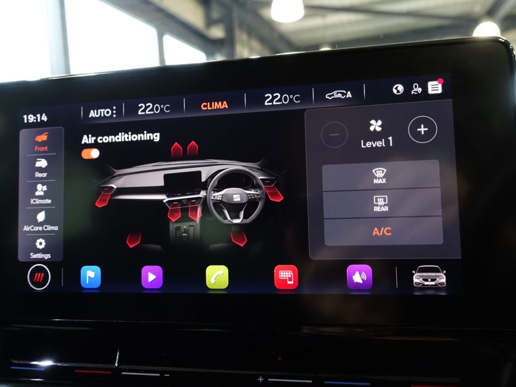 HIGH QUALITY, NEW SHAPE LEON FR – COMES WITH A COMPREHENSIVE SEAT MAIN DEALER SERVICE HISTORY + VIRTUAL COCKPIT DIGITAL DASH DISPLAY + SATELLITE NAVIGATION + APPLE CARPLAY / ANDROID AUTO + BLUETOOTH CONNECTIVITY INCLUDING MEDIA STREAMING + PRIVACY GLASS + FRONT AND REAR PARKING SENSORS + DAB DIGITAL RADIO + IN CAR ENTERTAINMENT + LEATHER MULTI FUNCTION STEERING WHEEL + AUTOMATIC LED HEADLIGHTS + LED DAY TIME RUNNING LIGHTS + CRUISE CONTROL + THREE ZONE CLIMATE CONTROL + AIR CONDITIONING + ELECTR