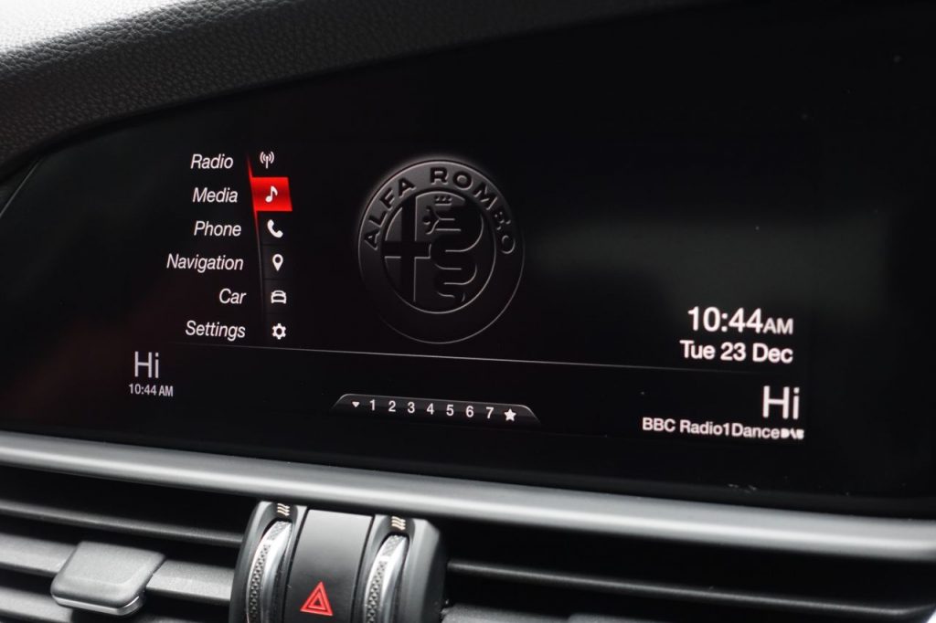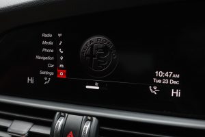 Other features: 40-20-40 Split Folding Rear Seats,6 Way Manual Front Seats,Aluminium Door Sills,Aluminium Sports Pedals – Central Tunnel Cover and Front Door Mouldings,Aluminium Sports Pedals and Footrest,Auto Windscreen Wipers,Black Painted Interior Bezels,Climate Control – Dual Zone,Engine Start Button on Steering Wheel,Front Passenger Sun Visor with Mirror,Head Restraints – Third Rear,Leather Multi-Function Steering Wheel 18in Alloy Wheels – Dual 5-Spoke – Dark Finish with Monochrome Central Wheel Caps,All Season Tyres,Brake Calipers – Aluminium,Dark Finish Exhaust Tips,Dark Finish Giulia Exterior Badge,Dark Finish V Grille and Mirror Caps,Dark Tinted Rear Windows,Electric Windows – Front and Rear,Gloss Black Window Surrounds,Kick Plates – Aluminium,Lighting Pack,Privacy Glass,Tyre Repair Kit ABS – Anti Lock Braking System,Active Cruise Control,Airbags – Driver,Airbags – Front Side,Airbags – Passenger,Airbags – Passenger Deactivation,Alfa DNA Driving Mode Selector,Alfa Rotary Pad,Autonomous Emergency Braking – AEB,Electric Parking Brake,ESC – Electronic Stability Control,Forward Collision Warning – FCW,Integrated Braking System – IBS,Lane Departure Warning – LDW,Parking Sensors – Rear,Perimeter and Volumetric Alarm System,Remote Central Locking,TPMS – Tyre Pressure Monitoring System Auto Headlights,Cloth-Leather – Black-Red,Daytime Running Lights,LED Tail and Brake Lamps,Power Steering,Silverstone Grey