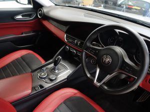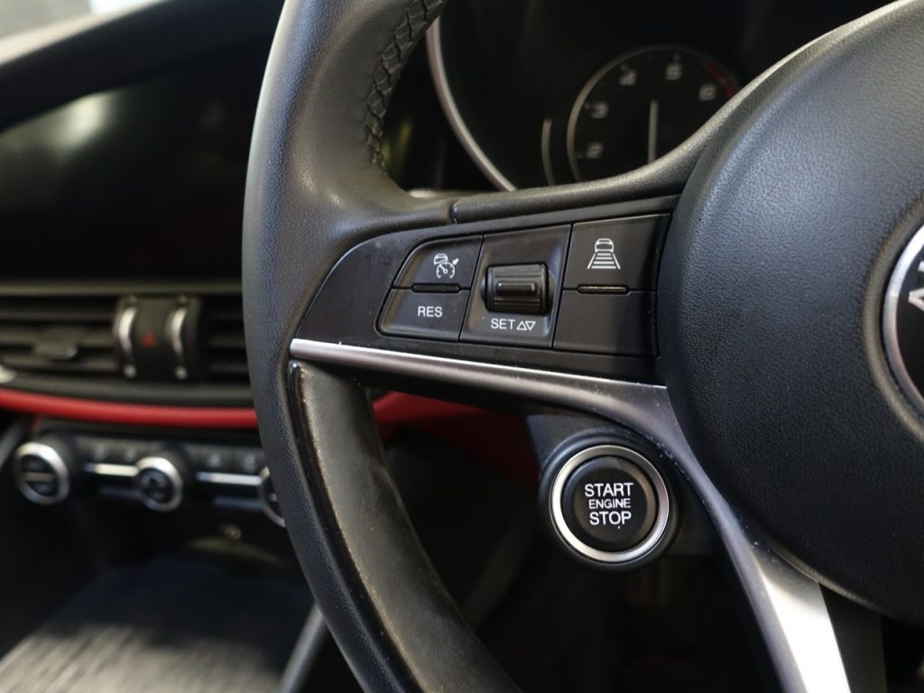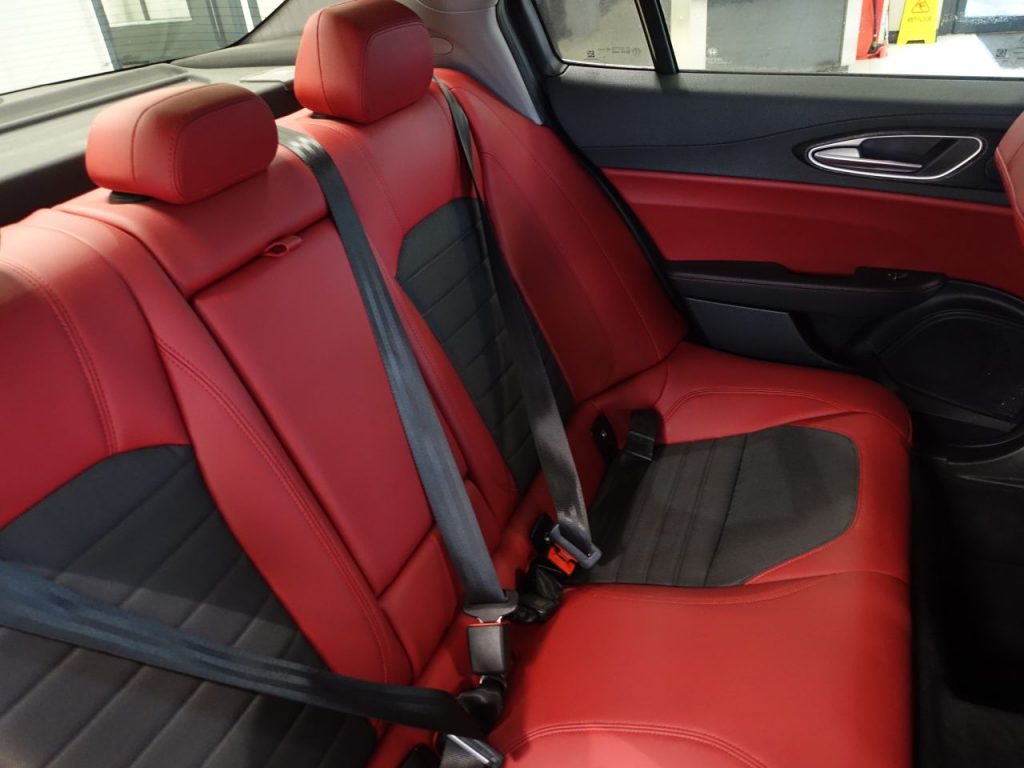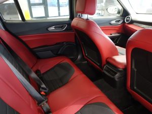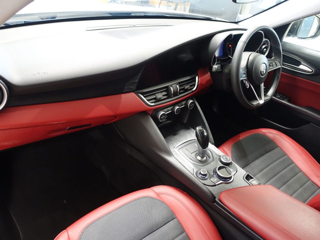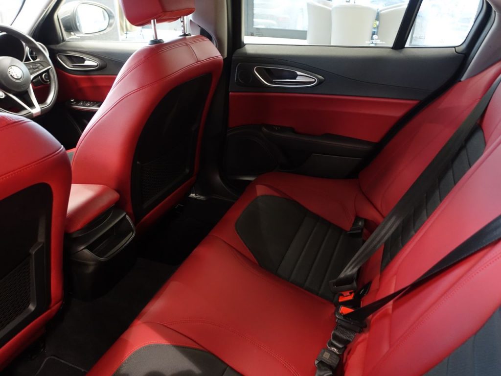 Other features: 40-20-40 Split Folding Rear Seats,6 Way Manual Front Seats,Aluminium Door Sills,Aluminium Sports Pedals – Central Tunnel Cover and Front Door Mouldings,Aluminium Sports Pedals and Footrest,Auto Windscreen Wipers,Black Painted Interior Bezels,Climate Control – Dual Zone,Engine Start Button on Steering Wheel,Front Passenger Sun Visor with Mirror,Head Restraints – Third Rear,Leather Multi-Function Steering Wheel 18in Alloy Wheels – Dual 5-Spoke – Dark Finish with Monochrome Central Wheel Caps,All Season Tyres,Brake Calipers – Aluminium,Dark Finish Exhaust Tips,Dark Finish Giulia Exterior Badge,Dark Finish V Grille and Mirror Caps,Dark Tinted Rear Windows,Electric Windows – Front and Rear,Gloss Black Window Surrounds,Kick Plates – Aluminium,Lighting Pack,Privacy Glass,Tyre Repair Kit ABS – Anti Lock Braking System,Active Cruise Control,Airbags – Driver,Airbags – Front Side,Airbags – Passenger,Airbags – Passenger Deactivation,Alfa DNA Driving Mode Selector,Alfa Rotary Pad,Autonomous Emergency Braking – AEB,Electric Parking Brake,ESC – Electronic Stability Control,Forward Collision Warning – FCW,Integrated Braking System – IBS,Lane Departure Warning – LDW,Parking Sensors – Rear,Perimeter and Volumetric Alarm System,Remote Central Locking,TPMS – Tyre Pressure Monitoring System Auto Headlights,Cloth-Leather – Black-Red,Daytime Running Lights,LED Tail and Brake Lamps,Power Steering,Silverstone Grey