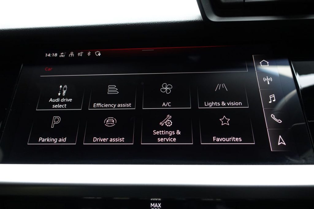 Other features: 4-Way Lumbar Support for Front Seats,Aluminium Interior Elements,Audi Virtual Cockpit,Auto Dimming and Frameless Rear View Mirror,Cloth Headlining in Black,Comfort and Sound Package,Dual-Zone Electronic Climate Control,Extended Ambient Lighting Pack,Front and Rear Centre Armrest in Leather,Front and Rear Floor Mats,Front Sports Seats,Illuminated Door Sill Trims with Aluminium Inserts and S Logo,Inlays – Dark Spectrum Aluminium,LED Interior Light Package,Luggage Compartment Floor Covering,Pedals and Footrest – Stainless Steel,Split-Folding Rear Seat Bench can be Split 40: 20: 40 or Fully, with Centre Armrest and Cup Holders,Steering Wheel – 3-Spoke Leather-Multi-Function,Steering Wheel – Sports Contour Leather-Wrapped with Multi-Function Plus 3-Spoke – Flat-bottomed,Storage Package,Tool Kit 18in Alloy Wheels – 5-Arm Dynamic Design,18in Alloy Wheels – 5-spoke V Style Diamond Cut,18in Alloy Wheels – 5-Y-Spoke Style – Diamond Cut Graphite Grey,Aluminium Roof Rails,Aluminium Window Trims,Anti Theft Locking Wheel Bolts,Body Coloured Door Mirrors,Carbon Styling Package,Electric Windows – Front,Exterior Mirrors – Electrically Adjustable – Heated and Folding – Automatically Dimming on Both Sides with Built-In LED Side Indicators – Including Automatic Kerb-Side Function for the Passenger-Side,Manual Boot Compartment Lid,Panoramic Sunroof,Privacy Glass,Privacy Glass – Dark-Tinted Rear Window – Rear Door and Side Window.,Rear Side Air Outlets – Grained Matt Black,S Line Bumpers,S Line Styling,S Roof Spoiler,Space Saver Spare Wheel and ToolKit and Jack,Trailer Hitch,Tyre Repair Kit,Windscreen with Acoustic Glazing Airbags – Driver and Front Passenger with Passenger Airbag Deactivation,Anti-Theft Alarm,Audi Drive Select,Audi Pre-Sense Front with Pedestrian and Cyclist Recognition,Child Seat Anchors ISOFIX in Front, Top Tether and i-Size for Outer Rear Seats,Collision Avoidance Assistant,Cruise Control,Electronically Operated Child Locks,ESC – Electronic Stabilisation Control inc ABS – ASR and EDL,First Aid Kit and Warning Triangle and 2 Safety Vests,Front Side Airbags with Head Airbags and Interaction Airbag,Hill Hold Assist,I-Size and Top Tether Child Seat Mounting for the Outer Rear Seats,Lane Departure Warning,Rear Parking Sensors,Rear Side Airbags with Head Airbag System,Remote Central Locking,Seat Belt Monitoring,Tyre Pressure Loss Indicator,Voice Control System with Natural Language Interaction Audi Exclusive,Audi Phone Box Light with Wireless Charging,Audi Warranty 4 Years – 75000 Miles – Whichever Comes First,Audi Warranty 5 Years – 90000 Miles – Whichever Comes First,Automatic Start-Stop System with Recuperation,Daytona Grey,Electromechanical Power Steering,Glacier White,Headlights – High-Beam Assist,Ibis White,LED Headlights with LED Rear Lights and Dynamic Rear Indicators,Light and Rain Sensor,Mythos Black,Navarra Blue,Python Yellow,Sport Suspension,Standard Suspension,Tango Red,Turbo Blue,Twin Leather – Front Sport Seats with S Embossed Logo – Black,Twin Leather – Front Sport Seats with S Embossed Logo – Steel Grey