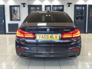 HIGH QUALITY, BMW 5 SERIES – 1 OWNER FROM NEW, COMES WITH A FULL BMW MAIN DEALER SERVICE HISTORY + VIRTUAL COCKPIT DIGITAL DASH DISPLAY SATELLITE NAVIGATION + BLUETOOTH MEDIA STREAMING + DAB DIGITAL RADIO + KEYLESS START + AUTOMATIC LED HEADLIGHTS + CRUISE CONTROL + IN CAR ENTERTAINMENT WITH MEDIA DISPLAY + LED DAY TIME RUNNING LIGHTS + FRONT AND REAR PARKING SENSORS + HILL HOLD START ASSIST + DUAL ZONE CLIMATE CONTROL + AUTOMATIC AIR CONDITIONING + PRIVACY GLASS + SELECTABLE DRIVING MODES