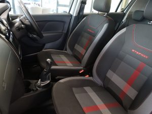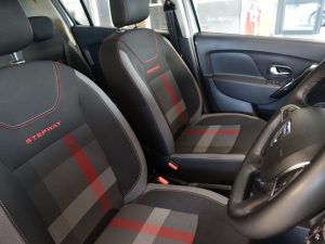 Other features: 3-Speed Front Windscreen Wipers,Air Recirculation – 4-speed Heating and Ventilation,Air Vents – Satin Chrome,Boot Light,Central Console Surround – Satin Chrome,Chrome Heating Control Inserts,Door Handles – Interior Front – Satin Chrome,Door Handles – Interior Rear – Satin Chrome,Door Panels – Dark Carbon,Front Courtesy Light,Front Passenger Grab Handle,Gear Knob – Leather,Headrests – Rear Height Adjustable x3,Height-Adjustable Drivers Seat,Height-Adjustable Front Headrests,Height-Adjustable Steering Wheel,Instrument Dial Surrounds – Satin Chrome,Manual Air Conditioning,Map Pockets on Front Seatbacks,Rear Passenger Grab Handles,Rear Washer-Wipe,Seats – 60-40 Split Folding Rear,Soft Feel Steering Wheel,Sunvisor with Vanity Mirror – Passenger 16in Steel Wheels – Flex Expression,Black Wheel Arch Extensions,Bumpers – Front and Rear Body Coloured,Chrome Front Grille Strip,Door Handles – Black,Door Mirrors – Heated and Electrically Adjustable,Door Mirrors – Metal Grey,Electric Windows – Front,Electric Windows – Rear,Fog Lamp Embellisher – Satin Chrome,Heated Rear Window,Roof Bars – Metal Grey,Side Sills – Black,Skid Plates – Front and Rear – Satin Chrome,Stepway Logo on Front Door Panel,Tinted Windows,Tyre Inflation Kit 3-Point Rear Seatbelts x3,7-Function On-Board Computer,Airbags – Driver,Airbags – Front Passenger with Deactivation Function,Airbags – Front Side,Anti-intruder Automatic Door-locking System,Anti-lock Braking System – ABS and Emergency Brake Assist – EBA,Central Locking – Remote,Child Locks in Rear Doors,Cruise Control and Speed Limiter,Door Open – Visual Warning,ECO Mode,ESC – Electronic Stability Control with ASR – Traction Control and Hill Start Assist – HSA,Gear Shift Indicator,Height-Adjustable Front Seatbelts,ISOFIX Points for Child Seats in Both Outer Rear Seats,Rear Parking Camera,Rear Parking Sensors,Rev Counter,Seatbelt not Fastened – Visual and Audible Warning,Thatcham Approved Engine Immobiliser,Tyre Pressure Monitor Front Fog Lights,Headlights – Double Optic with Chrome Surrounds,Headlights Left On – Audible and Visual Warning,High Level Third Brake Light,Highland Grey,LED Automatic Daytime Running Lights,Power Assisted Steering,Raised Ride Height,Techroad Cloth – Black and Grey with Red Inserts