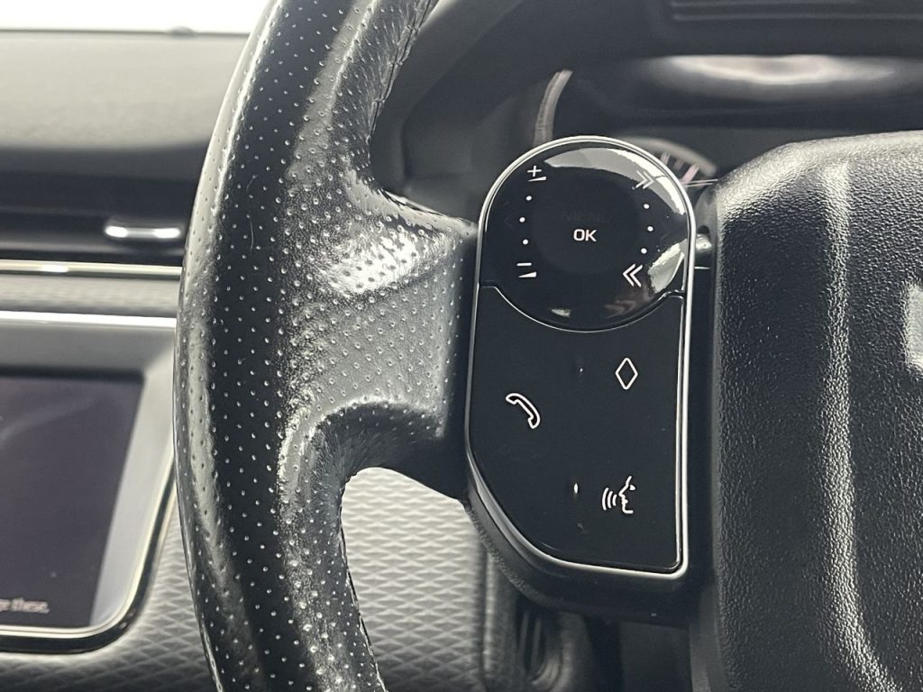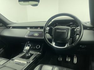 Other features: 10-Way Heated Electric Front Seats,40-20-40 Split Fold Rear Seat,Ambient Interior Lighting,Analogue Dials with Central TFT Display,Auto-Dimming Interior Rear View Mirror,Bright Metal Pedals,Carpet Mats,Chrome Treadplates,Headlining – Ebony Morzine,Leather Steering Wheel,Manually Adjustable Steering Column,Overhead Lighting Console,Overhead Stowage for Sunglasses,Passive Front Headrests,Push Button Start,Rain Sensing Windscreen Wipers,Rear Air Vents,Seats – Rear Centre Head Restraint,Smart Settings,Sun Visors – Illuminated Vanity Mirrors,Trim Finish – Gradated Linear Dark Aluminium,Twin Front Cupholders with Cover,Twin Sliding Front Centre Armrest,Two-Zone Climate Control 18in Alloy Wheels – 5-Split Spoke – Style 5074 – Gloss Sparkle Silver,All Season Tyres,Auto-Dimming – Power Fold – Heated Door Mirrors with Approach Lights,Body Coloured Roof,D150 Badge,Electric Windows with One-Touch Open-Close and Anti-Trap,Evoque and R-Dynamic Badge,Flush Deployable Door Handles,Heated Rear Window with Timer,Locking Wheel Nuts,Manual Tailgate,R-Dynamic Exterior Pack,Rear Fog Lights,S Badge,Standard Roof,Tailgate Spoiler,Tyre Repair System,Windscreen – Heated,Windscreen Washer Jets – Heated ABS – Anti Lock Braking System,Airbags – Driver Knee,Airbags – Front – Driver and Front Passenger,Autonomous Emergency Braking,Brake Pad Wear Indicator,Cruise Control and Speed Limiter,Customer Configurable Autolock,Driver Condition Monitor,DSC – Dynamic Stability Control,EBA – Emergency Brake Assist,EBD – Electronic Brake-Force Distribution,Electric Parking Brake,ETC – Electronic Traction Control,Front and Rear Parking Aid,Hill Launch Assist,Intrusion Sensor,Lane Keep Assist,Power Operated Child Locks,Rear ISOFIX,Rear View Camera,RSC – Roll Stability Control,Seat Belt Reminder,Side Curtain Airbags and Thorax,TPMS – Tyre Pressure Monitoring System,Traffic Sign Recognition and Adaptive Speed Limiter,Voice Control Automatic Headlights,EPAS – Electronic Power Assisted Steering,LED Headlights,Manual Headlight Levelling,Passive Suspension