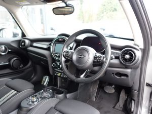 Other features: 4 Lashing Eyes in Luggage Compartment,Air Conditioning – Automatic Dual Zone,Brake Energy Recuperation Toggle Switch,Charging Flap Embossed with e Logo in Body Colour,Charging Flap on Drivers Side Rear Panel – Embossed with E-Logo – Includes LED Light Indicating Charging Status,Chrome Highlights,Colour Line – Carbon Black Soft Touch Knee Roll and Armrests in the Doors,Cup Holders,Digital Instrument Cluster,Door Sill Strips – Metal with Cooper S,Door Storage Compartments,Floor Mats,Foldable Rear Seats 60-40,Glove Compartment,Headliner – Satellite Grey,Interior Lighting in Front of Headliner,Interior Surface – Black Chequered,Luggage Compartment – Light,Mechanical Seat Adjustment for Drivers Seat and Passengers Seat,Multifunction Controls for Steering Wheel,Rain Sensor Window Wipers,Sport Leather Steering Wheel,Sport Seats including Manual Adjustment for Thigh Rests,Start-Stop Toggle including Keyless Go,Steering Column Height and Length Adjustment,Storage – Pockets on Back of Front Seats,Sun Visor with Vanity 16in Alloy Wheels – Revolite,Bonnet Scoop,Electric Windows – Front,Grey Front Blade and Mirrors,Heated Rear Window,Heated Windscreen Washer Jets,Mirror Caps – Front Grille – Tailgate Handle in Vigorous Grey,Model Logo Cooper S on Right of Tailgate,Radiator Grille including E Badge,Rear Fog Light,Roof in Body Colour,Side Scuttle Panels with Integrated Indicators – with E Badge,White Indicator Lenses 3 Point Seatbelts on all Seats,Acoustic Pedestrian Protection,Airbags for Driver and Front Passenger – 6 Airbags as Standard,Alarm System,Anti-Lock Braking System – ABS,Cruise Control with Brake Function,Dynamic Brake Lights,Dynamic Stability Control – DSC,Electronic Parking Brake,Electronic Vehicle Immobiliser,Front and Rear ISOFIX – including Front Passenger Airbag Deactivation,MINI Driving Modes,On-Board Computer,Performance Control,Rear Window Wiper,TPWS – Tyre Pressure Warning System,Two-Tone Horn,Warning Triangle and First Aid Kit AC-DC Charging,Automatic Headlight Activation Switch,Double Stripe Cloth – Carbon Black,Electro-Mechanical Steering with Speed Dependant Steering Assistance,Heat Pump,LED Fog Lights,LED Headlights with Closed Ring as Daytime Driving Lights,Moonwalk Grey,Rear LED Lights with Union Jack Design,Two Charging Cables