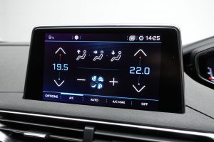 Other features: Automatic and Dual-Zone Diffusion Air-Conditioning System,Blue Ambient Lighting for Central Connecting Zone,Brumeo Fabric Trimmed Door Armrests,Central Front Armrest with Butterfly-Wing Opening and Illuminated Storage Compartment,Dashboard Trim – Satin Chrome,Digital Instrument Panel Trim – Satin Chrome,Driver and Front Passenger Seat Mechanical Height Adjustment,Flocked Glove Box Interior,Front Ambient Lighting,Front Central Console with Two Cup-Holders,Front Interior Light with Reading Spotlights x2 – Row 2 Interior Light with Reading Spotlights x2 – Row 3 Reading Spotlights x2 with Timer,Front Optimised Safety Headrests and Rear Retractable Headrests – x3 – Height-Adjustable,Front Windscreen Wiper with Magic Wash Cleaning System,Grab Handles x4 – Retractable – Damped,Hands Free Start System – Keyless Start,Horn – Two Tone,Illuminated Glove Box,Illuminated Vanity Mirrors,Interior Door Handles – Satin Chrome,LED Interior Lighting,Map Pockets on Front Seat Backs,Peugeot i-Cockpit,Rear Coat Hooks x2,Rear Venti 18in Alloy Wheels – Detroit – Storm Grey – Diamond Cut,18in Alloy Wheels – Los Angeles – Diamond Cut,Aluminium Longitudinal Roof Bars,Chrome Grille,Chrome Rear Bumper Scuff Plate,Dark Tinted Rear Side and Tailgate Windows,Door Mirror Shells – Body-Colour,Door Mirrors with Blind Spot Detection Indicator and Auto Dipping Function in Reverse Gear,Exterior Door Handles – Body-Colour,Front and Rear Door and Sill Protectors with Polished Stainless Steel Insert,Front Wing Trim – Chrome,Gloss Black B and C Pillar and Aerodynamic Deflector Trim,Gloss Black Front Bumper Air Scoops,Gloss Black Rear Cluster Connecting Strip,Heated Rear Windscreen with Integrated Antenna,LED Side Indicator Lights Integrated into Door Mirrors,One-Touch Electric Front and Rear Windows with Pinch Protection,Power Folding Door Mirrors – Includes LED Courtesy Approach Lights,Puncture Repair Kit including Compressor – Sealant Cartridge and Towing Eye,Rear Spoiler – Body Colour,Roof – Body Colour,Side Window Trim – Black Rubber,Stainless Steel R 180 Degree Colour Reversing Camera with Wash System,ABS – Anti-Lock Braking System with REF – Electronic Braking Distribution and AFU – Emergency Braking Assistance,Advanced Emergency Braking System,Airbags – Adaptive Driver and Front Passenger,Airbags – Driver and Front Passenger Side,Airbags – Front and Rear Curtain,Alarm,Automatic Door Locking When Moving Off,Automatic Hazard Light Activation Upon Heavy Brake Application,Body Protectors in Black,Driver Attention Alert System 1 – DAA1,DSC – Dynamic Stability Control and ASR – Electronic Anti-Skid System,Electric Child Locking Functionality on Rear Windows and Doors,Electric Parking Brake includes Hill Assist,Electronic Code Immobiliser,Extended Traffic Sign Recognition,Exterior Temperature Indicator with Ice Warning,Front Three-Point Retractable Seatbelts – Height-Adjustable with Pre-Tensioners and Force Limiters,Gear Shift Indicator,ISOFIX Child Seat Fittings – x3 – Second Row Rear Seats,Lane Departure Warning System,LED Rear Number Plate Lighting,Multifun Cloth – Leather – Colyn-Mistral,Cumulus Grey,Eco LED Headlights,Electric Power Steering with Reach and Rake Adjustable Steering Column,Headlights Left On Audible Warning,LED Daytime Running Lights – Saber Style with Integrated LED Indicators,LED Rear Lights including Reversing Lights – Scrolling Indicators and PEUGEOT 3 Claw Effect Light Signature with Daylight Function