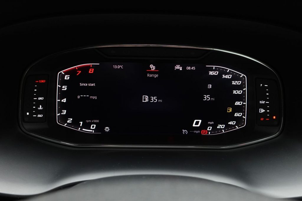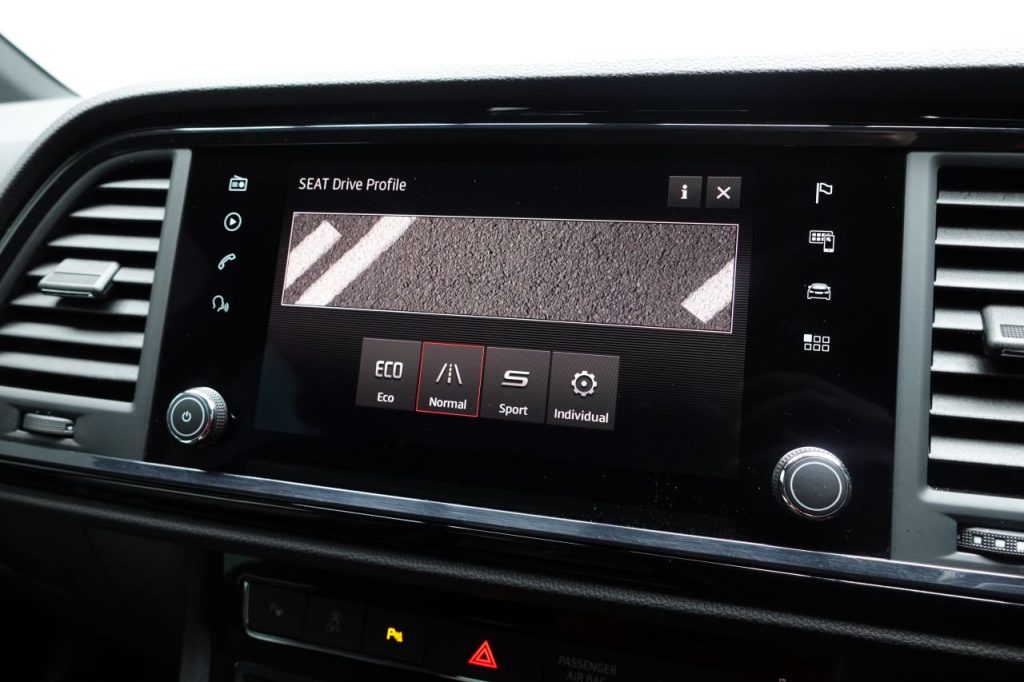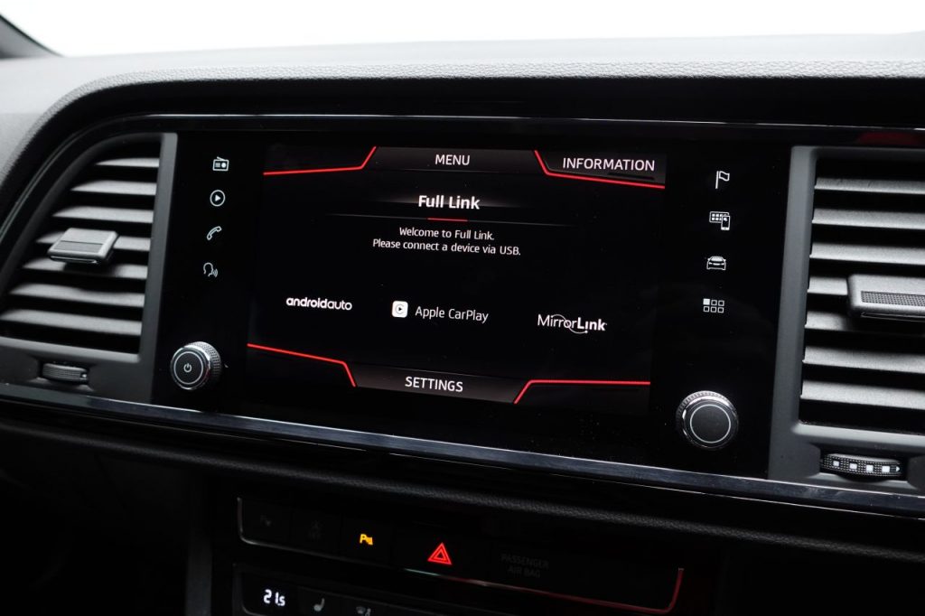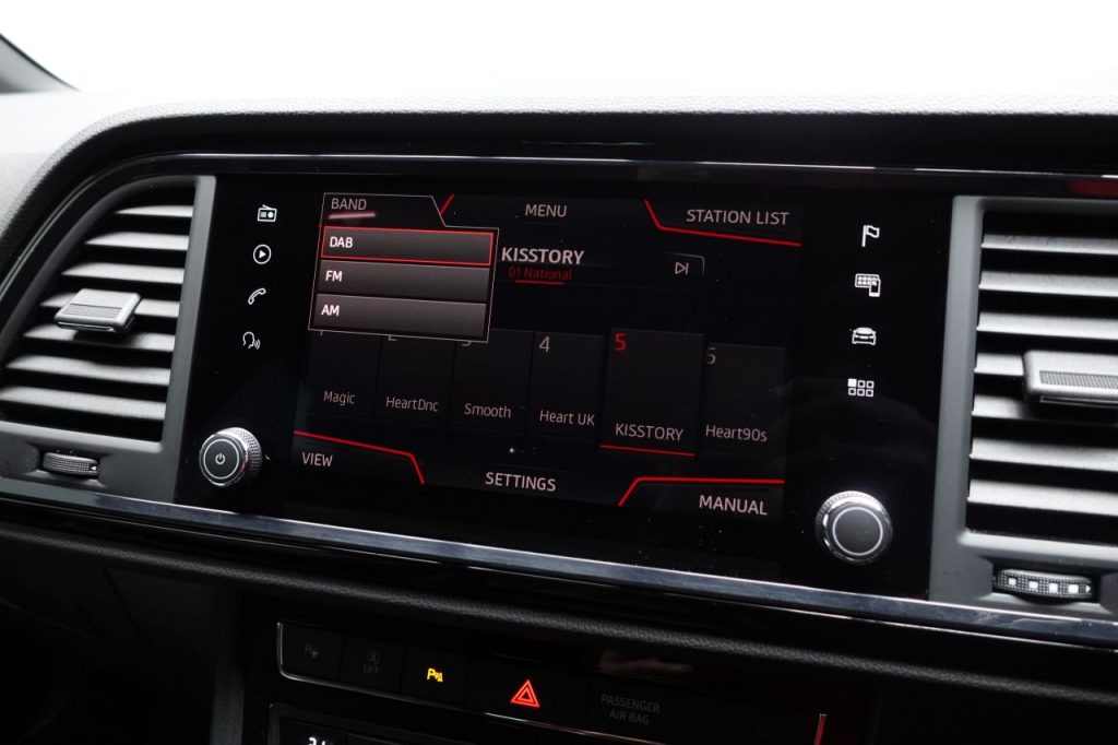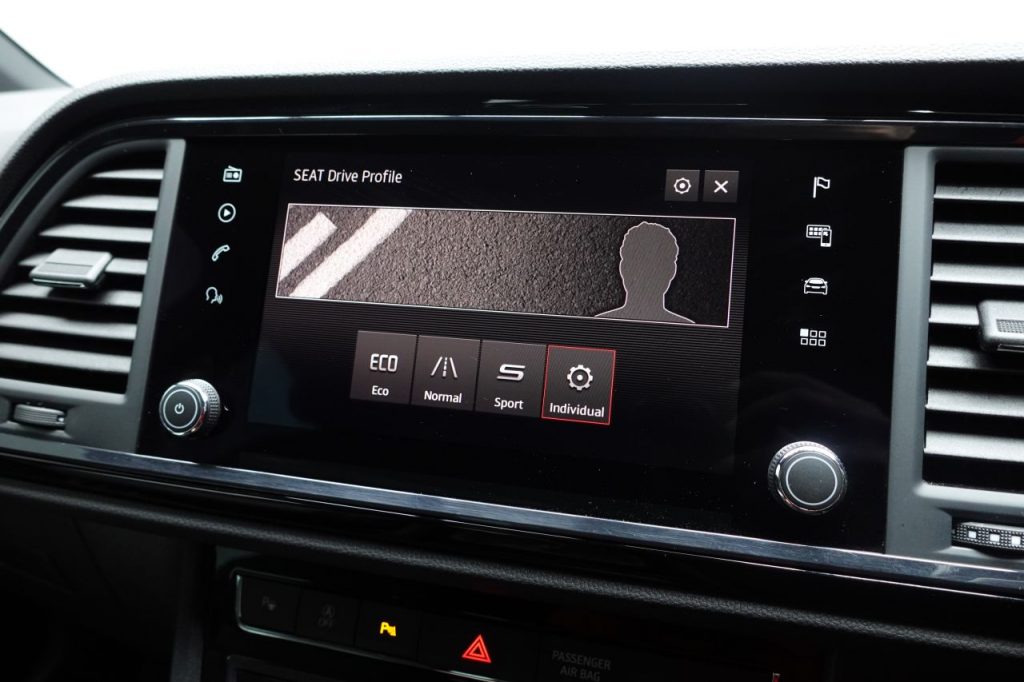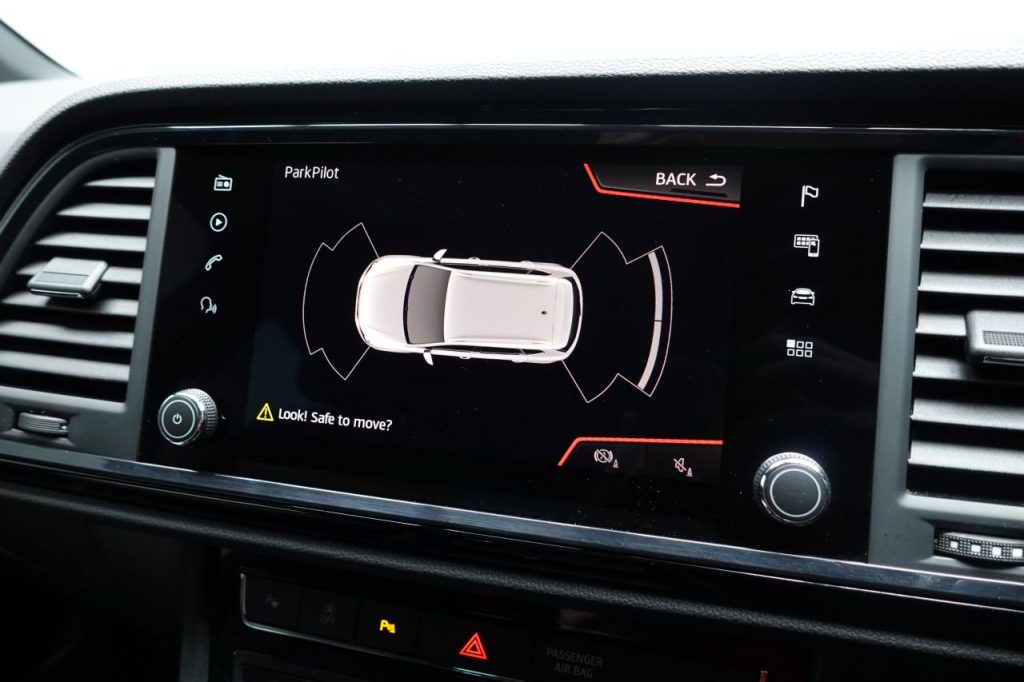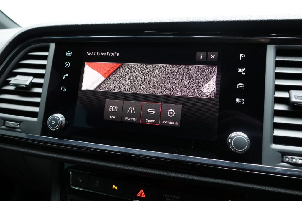 Other features: Active Front Head Restraints,Advanced Multi Colour Interior Ambient Lighting and LED Interior Illumination,Convenience Pack,Digital Cockpit,Driver and Passenger Seat with Lumbar Adjustment,Driver and Passenger Sun Visor with Covered and Illuminated Mirror – Driver Sun Visor with Card Holder,Dual Zone Climate Control,Electric Drivers Seat,Front Centre Armrest – Adjustable with Storage Compartment and Rear Air Outlet,Front Seat Back Storage Pockets,Gloss Black Interior Detailing,Height Adjustable Front Headrests,Height Adjustable Passenger Seat,Height-Adjustable Drivers Seat,Illuminated Aluminium Front Door Sill with Trim Logo,Instrument Lighting with Brightness Control,Interior Lighting,Leather Gear Knob,Leather Steering Wheel,Pedals in Aluminium,Rear Armrest and Easy Back Seat Release Mechanism From Boot,Rear Fog Light,Split Folding Rear Seats – 60-40,Sunglasses Storage Compartment in Roof Console,Winter Pack 19in Alloy Wheels – Exclusive Machined – Glossy Black,Dark Tinted Rear Windows,Door Mirrors – Gloss Black,Electrically Adjustable Folding and Heated Door Mirrors,Exterior Black Mouldings,Front and Rear Electric Windows,High Gloss Black Grille,Locking Wheel Bolts,Rear Spoiler,Roof Rails – Gloss Black,Visible Twin Exhaust Pipes,Wheel Arch Surrounds – Body Colour,Window Trim – Gloss Black Alarm – Perimeter and Interior Monitoring,Anti-Lock Braking System – ABS,Cruise Control,Digital Clock,Driver and Front Passenger Airbags,Drivers Knee Airbag,Electric Parking Brake Including Autohold Function,Electronic Stability Control – ESC,Front and Rear Seatbelt Reminder,Front Assist – City Emergency Braking and Pedestrian Protection,Front Passenger Airbag De-Activation,Front Side Airbags,Gear Recommendation Indicator,Hill Hold Control,ISOFIX Points in Outer Rear Seats with Top Tether Anchorage Points,Low Fuel Warning Light,Outside Temperature Gauge,Park Assist,RPM Counter,SEAT Drive Profile with Driving Experience Button,Tiredness Recognition System,Traction Control System – ASR,Trip Computer,Two Curtain Airbags,Tyre Pressure Monitoring System Comfort Suspension,Door Mirrors with Welcome Light Silhouette,Electronic Differential Lock System – XDS,Full LED Headlights,LED Front Fog Lights,Lights Left On Warning Buzzer,Rack Electric Power Steering – R-EPS