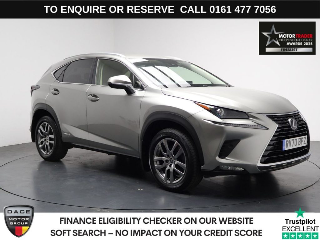 Quality Used 2020 SILVER LEXUS NX SUV 2.5 300h GPF SUV 5dr Petrol Hybrid E-CVT 4WD Euro 6 (s/s) (197 ps) (first registered on 2020-09-12) for sale in Stockport. This fantastic SUV car is located at Dace Car Supermarket, Greg Street, Reddish, Stockport, Cheshire, SK5 7BS and listed with price tag of £19990.00 GBP.