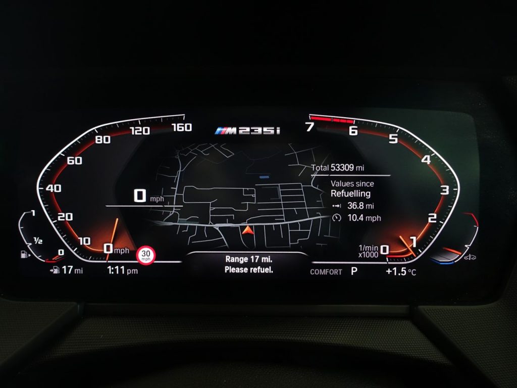 Other features: 40-20-40 Manually Split Folding Rear Seat,Air Conditioning – Automatic – Dual Zone,Armrest – Front – Folding with Storage Compartment,Automatic Headlight Beam-Throw Control,Automatically Dimming Rear View Mirror,BMW Live Cockpit Professional,Central Locking Switch for All Doors – Fuel Filler Cap – Luggage Compartment,Contrast Stitching on Instrument Panel,Cupholders – Two Front Centre Console,Door Sill Finishers with M235i Designation – Front,Extended Lighting,Extended Storage,Fading Support,Floor Mats Finished in Anthracite with Contrasting Surround,Front M Sport Seats,Glove Box with Light,Headlining – M Anthracite,Illuminated Boston Interior Trim,Interior Lighting,M Sport Multi-Function Leather Steering Wheel – Three-Spoke,Multifunction Controls for Steering Wheel,Personal Profile,Pull-Away Assistant,Rain Sensor with Automatic Headlight Activation,Rear Fog Light,Rear Seat Headrests – Three,Remote Control with Integrated Key – High-Gloss Black Inlay and M Designation,Seats – Front Heated,Side Armrests – Fron 18in Alloy Wheels – M Double-Spoke Style 556 – Bi-Colour,BMW Mobility Tyre Sealing System,Bumper System – Front and Rear,Direction Indicator Side Lights Integrated in Exterior Mirrors,Door Handles – Body Colour,Dual Exhaust Tailpipes – Free-Form Finisher in Cerium Grey – Left and Right Split,Electric Windows – Front and Rear with Open-Close Fingertip Control – Trap Release and Child Lock Function,Engine Cover with M Performance Designation,Exterior Parts in Contrast High-Gloss Black,Exterior Trim – High Gloss Shadowline,Folding Side Mirrors with Auto-Dimming,Kidney Grille in Cerium Grey with Mesh Design,Locking Wheel Bolts,M Logo Designation – Side – Cerium Grey,M Performance Exhaust System with Valve Control and Minimised Exhaust Back Pressure,M Rear Spoiler,M Sport Aerodynamic Package,Mirror Caps – Cerium Grey,Model Designation on Tailgate – Right,Preparation For High-Beam Assistant,Reversing Light in Rear Light Clusters,Tyres – Reduced Rolling Resistance ABS – Anti Lock Braking System including CBC – Cornering Brake Control,Active Guard Plus,Airbags – Driver and Passenger,Airbags – Front and Rear Curtain Head Protection System,Airbags – Front Side,Alarm System Thatcham Category 1 with Remote Control and Engine Immobiliser,Attentiveness Assistant,Brake Drying,Brake Readiness,Child Proof Locking System – Rear Doors,Child Seat ISOFIX Attachment For The Two Outer Rear Seats And Front Passenger Seat,Childproof Locking System – Rear Doors and Electric Windows,Condition Based Service,Crash Sensor,Cruise Control with Brake Function,Dead-locking Function System to all Doors,Drive Performance Control with ECO PRO – Comfort and Sport Modes,Drive-Away Locking System on All Doors-Luggage Compartment – Can Be De-Activated in iDrive Settings,DSC – Dynamic Stability Control Plus,DTC – Dynamic Traction Control,ECO PRO Mode,EDLC – Electronic Differential Lock Control,Electro-Mechanical Parking Brake with Auto-Hold Function,First Aid Kit and Warning Triangle,Integrated Owners H Alpine White,Check Control Warning System for Monitoring of Lights and Door-Luggage Compartment Open Warning,EPS – Electric Power Steering,High Level Third Brake Light,Larger Fuel Tank,LED Headlights,M Sport Braking System,M Sport Suspension,M Sports Steering,Servotronic Steering,Sport Automatic Transmission,Trigon Cloth-Alcantara – Anthracite,xDrive Intelligent All-Wheel Drive with M235i Specific Reinforced Components