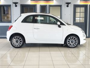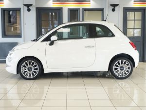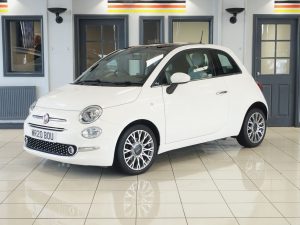 TOP SPECIFICATION CLUB LOUNGE FIAT 500 IN LOVELY CONDITION THROUGHOUT – COMES WITH A FULL SERVICE HISTORY + PANORAMIC GLASS SUNROOF + SATELLITE NAVIGATION + APPLE CARPLAY / ANDROID AUTO + APPS CONTROL + BLUETOOTH CONNECTIVITY + DAB DIGITAL RADIO + CRUISE CONTROL + PARKING SENSORS + IN CAR ENTERTAINMENTM WITH TOUCH SCREEN MEDIA DISPLAY + LED DAY TIME RUNNING LIGHTS + ECO STOP START SYSTEM + HILL HOLD START ASSIST + LEATHER MULTI FUNCTIONAL STEERING WHEEL + VOICE COMMAND + AIR CONDITIONING + ELECT