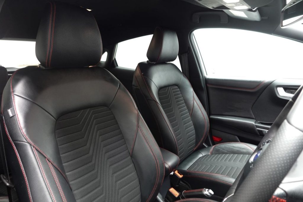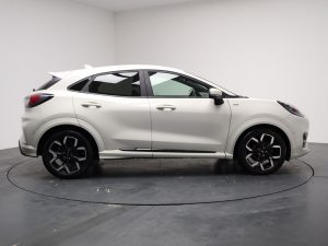 Other features: Alloy Sports Pedals,Carbon-Look Interior Deco Spears,Centre Console with Armrest – Stowage,Courtesy Lights – Ambient LED Courtesy Lighting – Single Colour,Driver and Passenger Seat Lumbar and Height Adjustment,Electronic Air Temperature Control – EATC,Floor Mats – Front and Rear,Ford MegaBox Extended Bootspace,Full Digital 12.3in Instrument Cluster,Headliner – Deluxe,Instrument Panel – High Level,Power Liftgate,Rear Seats – 2-Way Head Restraint Up-Down,Rear Seats – Second Row 60-40 Folding Seats,Restrain Device Pack,ST-Line Flat-Bottomed Sensico Steering Wheel – Leather Handbrake and Aluminium Gear Knob,ST-Line X First Edition Pack 18in Alloy Wheels – 5-Spoke – Matt Black Machined Finish,Acoustic Laminated Windscreen,Active Grille Shutter,Electric Windows – Front and Rear,Ford Easy Fuel System,Front Bumper – Unique ST-Line Sport Design – Body Colour,Locking Wheel Nuts,Lower Bodyside Moulding – Body Colour,Power-Foldable Heated Door Mirrors with Puddle Lamps,Privacy Glass,Puma Badge,Quickclear Heated Windscreen,Rear Bumper Body Colour – Diffuser,ST-Line Badge,ST-Line Bodykit with Large Rear Spoiler and Sports Suspension,Tyre Repair Kit ABS – Anti-lock Braking System,Cruise Control – Lane Keeping Aid and Lane Departure Warning,Driver Assistance Pack,ESC – Electronic Stability Control and Hill Start Assist,Post Collision Braking,Pre-Collision Assist with Autonomous Emergency Braking and Pedestrian-Cyclist Detection,Rear Parking Sensors,Thatcham Alarm,Trip-Fuel Computer,Tyre Pressure Monitoring System – TPMS Automatic Headlights with Rain-Sensing Wipers and Auto High Beam,Fixed LED Headlamps,Front Fog Lights with Cornering lights and LED Rear Lamps,Power Steering,Projector Headlamps with LED Daytime Running Lights,Selectable Driving Modes – Normal – Eco – Sport – Slippery and Trail,Speed Limiter