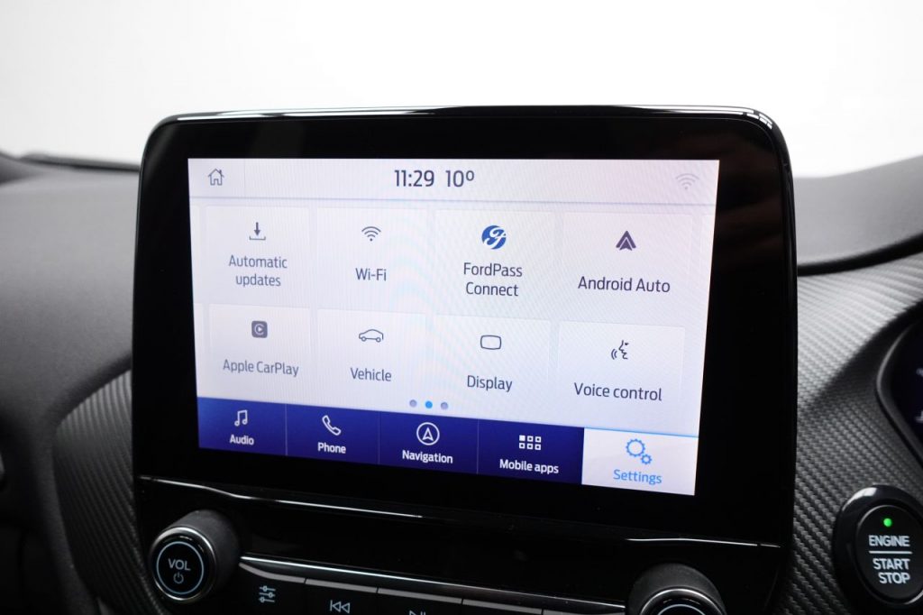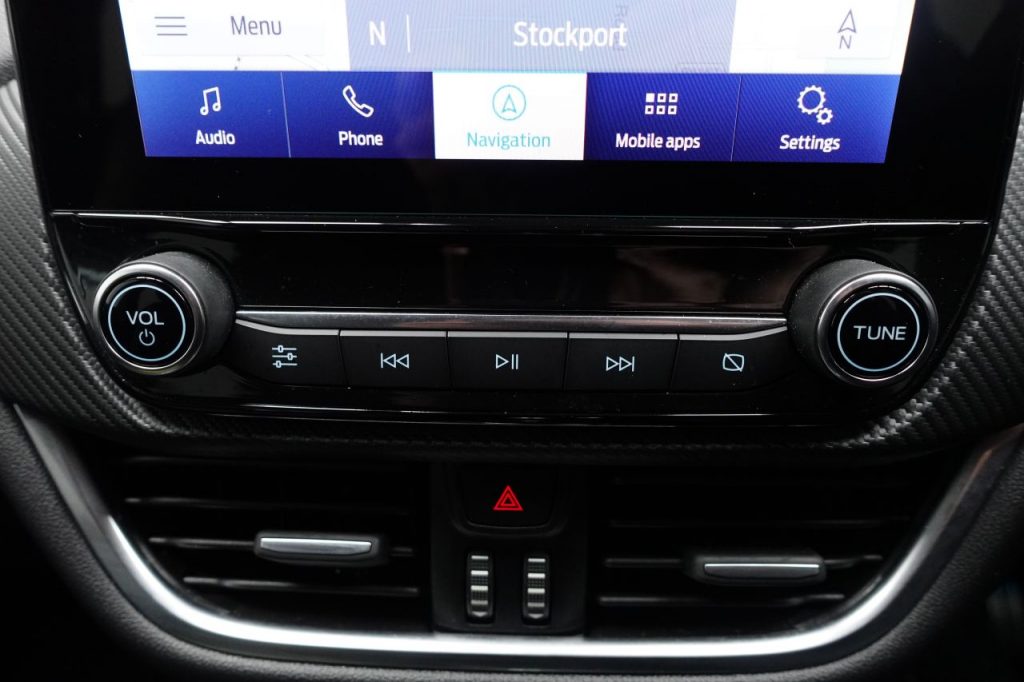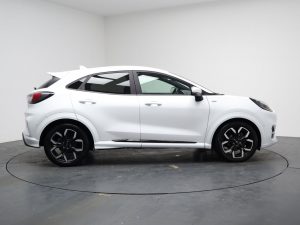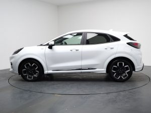 Other features: Alloy Sports Pedals,Carbon-Look Interior Deco Spears,Centre Console with Armrest – Stowage,Courtesy Lights – Ambient LED Courtesy Lighting – Single Colour,Driver and Passenger Seat Lumbar and Height Adjustment,Electronic Air Temperature Control – EATC,Floor Mats – Front and Rear,Ford MegaBox Extended Bootspace,Full Digital 12.3in Instrument Cluster,Headliner – Deluxe,Instrument Panel – High Level,Power Liftgate,Rear Seats – 2-Way Head Restraint Up-Down,Rear Seats – Second Row 60-40 Folding Seats,Restrain Device Pack,ST-Line Flat-Bottomed Sensico Steering Wheel – Leather Handbrake and Aluminium Gear Knob,ST-Line X First Edition Pack 18in Alloy Wheels – 5-Spoke – Matt Black Machined Finish,Acoustic Laminated Windscreen,Active Grille Shutter,Electric Windows – Front and Rear,Ford Easy Fuel System,Front Bumper – Unique ST-Line Sport Design – Body Colour,Locking Wheel Nuts,Lower Bodyside Moulding – Body Colour,Power-Foldable Heated Door Mirrors with Puddle Lamps,Privacy Glass,Puma Badge,Quickclear Heated Windscreen,Rear Bumper Body Colour – Diffuser,ST-Line Badge,ST-Line Bodykit with Large Rear Spoiler and Sports Suspension,Tyre Repair Kit ABS – Anti-lock Braking System,Cruise Control – Lane Keeping Aid and Lane Departure Warning,Driver Assistance Pack,ESC – Electronic Stability Control and Hill Start Assist,Post Collision Braking,Pre-Collision Assist with Autonomous Emergency Braking and Pedestrian-Cyclist Detection,Rear Parking Sensors,Thatcham Alarm,Trip-Fuel Computer,Tyre Pressure Monitoring System – TPMS Automatic Headlights with Rain-Sensing Wipers and Auto High Beam,Fixed LED Headlamps,Front Fog Lights with Cornering lights and LED Rear Lamps,Power Steering,Projector Headlamps with LED Daytime Running Lights,Selectable Driving Modes – Normal – Eco – Sport – Slippery and Trail,Speed Limiter