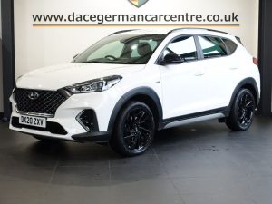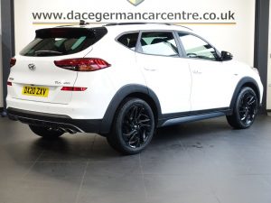 Quality Used 2020 WHITE HYUNDAI TUCSON SUV 1.6 CRDi MHEV N Line SUV 5dr Diesel Hybrid Manual Euro 6 (s/s) (136 ps) (first registered on 2020-07-17) for sale in Altrincham. This fantastic SUV car is located at Dace German Car Centre, 309 Manchester Road, Stockport, Cheshire, SK4 5EA – near Altrincham and listed with price tag of £14740.00 GBP.