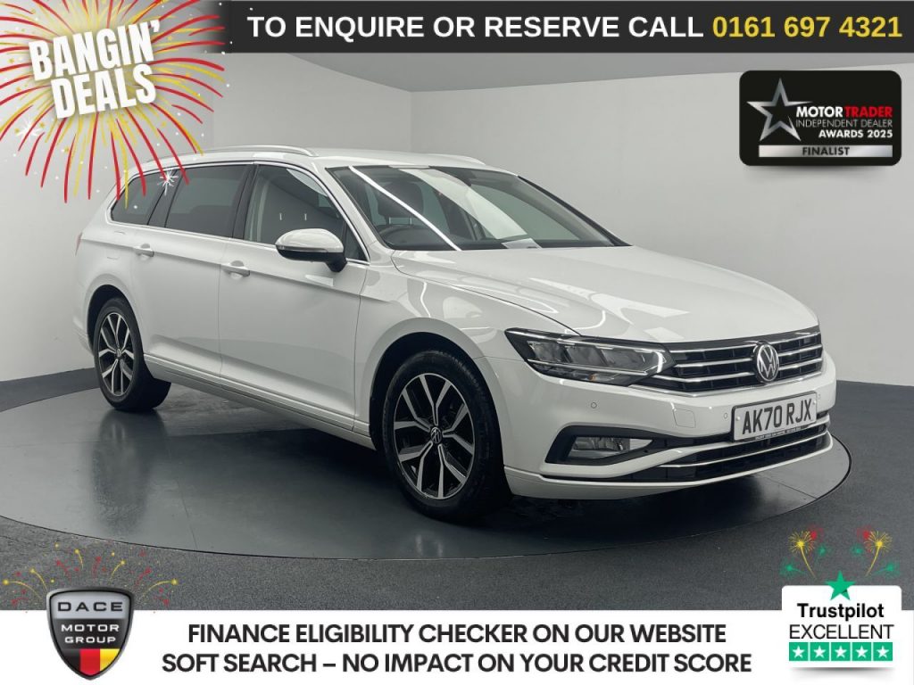 Quality Used 2020 WHITE VOLKSWAGEN PASSAT Estate 2.0 TDI EVO SEL Estate 5dr Diesel DSG Euro 6 (s/s) (150 ps) (first registered on 2020-12-10) for sale in Manchester. This fantastic Estate car is located at Dace Specialist Car Centre Manchester, 718 Liverpool Road, Eccles, Manchester, M30 7LW – near Radcliffe and listed with price tag of £14970.00 GBP.
