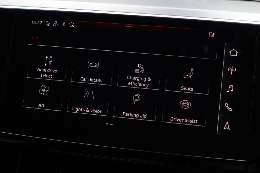 Other features: 2-Zone Automatic Air Conditioning,3-Spoke Flat Bottom Multi-Function Leather Steering Wheel with Paddles for Recuperation,4-Way Lumbar Support for Front Seats,AC and DC Charging Access Point on Drivers Side and Second AC Charging Access Point on Passenger Side,Audi Virtual Cockpit,Auto Dimming and Frameless Rear View Mirror,Climate Control – Electronic Deluxe 4-Zone,Cloth Headlining in Black,Comfort and Sound Package,Comfort Centre Armrest – Front,Comfort Remote Pre-Conditioning,Electrically Adjustable Front Seats including Memory Function for Drivers Seat,Extended Twin Leather Pack,Front and Rear Floor Mats,Front Sports Seats,Heated Front Seats,Illuminated Door Sill Trims with Aluminium Inlays – Front and Rear with S Logo in Front,Inlays – Darkened Matt Brushed Aluminium,Inlays in Fine Grain Ash – Natural Volcanic Grey,Keyless Go,LED Interior Light Package,Luggage Compartment Cover,Operating Buttons in Black – Glass Look with Haptic Feedback,Power Operated Tailgate,Removable Net Partition,Storage and Luggage 21in Alloy Wheels – 9.5J 10-Spoke Rotor Gloss Anthracite Black Audi Sport – Diamond Cut,21in Alloy Wheels – 9.5J 5-V-Spoke Platinum Look Gloss Star Design Audi Sport – Diamond Cut,Anti-Theft Wheel Bolts and Wheel Loosening Warning,Black Roof Rails,Black Styling Pack,Body Coloured Bumpers,Collapsible Spare Wheel with Car Jack,Door Mirrors – Black,Door Mirrors – Electrically Adjustable – Heated – Folding – Automatically Dimming with Memory Function with Kerb View Function for Passenger Side,Electric Windows – Front and Rear,Panoramic Glass Sunroof,Privacy Glass,Tow Bar,Virtual Door Mirrors ABS – Anti-Lock Braking System,Active Vehicle Alerting System – AVAS,Airbags – Driver,Anti-Theft Alarm,Audi Drive Select,Audi Pre-Sense Front and Basic,Compact e-tron Charging System,Cruise Control with Speed Limiter,First Aid Kit and Warning Triangle,ISOFIX Child Seat Mounting for Front Passenger Seat with Front Passenger Airbag Deactivation,ISOFIX Child Seat Mounting for Outer Rear Seats,Lane Departure Warning,Parking System Plus with 360 Degree Sensors and Function-On-Demand Preparation,Rear Side Airbags with Illuminated Seat Buckles,Rear View Camera,Side Airbags – Front and Head Airbag System,Tour Pack 11 kW Onboard Charger,Adaptive Air Sport Suspension,Audi Exclusive,Audi Side Assist including Pre-Sense Rear,Audi Warranty – Extended to 48 Months or 75000 Miles with Unlimited Mileage in First 24 Months,Audi Warranty – Extended to 60 Months or 90000 Miles with Unlimited Mileage in First 24 Months,Brilliant Black,Catalunya Red,Daytona Grey,Floret Silver,Glacier White,Household Plug Type G – GB,Industry Plug CEE 32 A-230 V,LED Rear Lights,Mode 3 Type 2-AC Charging Cable 22kW,Mythos Black,Navarra Blue,Progressive Steering,Siam Beige,Valcona Leather – Sports Seats with S Embossed Logo – Black with Rock Grey Stitching,Valcona Leather – Sports Seats with S Embossed Logo – Rotor Grey with Anthracite Stitching