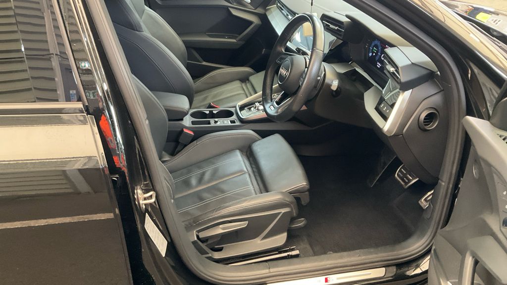 Other features: Aluminium Interior Elements,Audi Virtual Cockpit,Auto Dimming and Frameless Rear View Mirror,Cloth Headlining in Black,Dual-Zone Electronic Climate Control,Front and Rear Centre Armrest in Leather,Front and Rear Floor Mats,Front Sports Seats,Illuminated Door Sill Trims with Aluminium Inserts and S Logo,Illuminated Vanity Mirrors,Inlays – Dark Spectrum Aluminium,Luggage Compartment Floor Covering,Pedals in Stainless Steel and Footrest in Black,Split-Folding Rear Seat Bench can be Split 40: 20: 40 or Fully, with Centre Armrest and Cup Holders,Steering Wheel – 3-Spoke Leather-Multi-Function,Tool Kit,Type 2 Socket for AC Charging 18in Alloy Wheels – 5-spoke V Style Diamond Cut,18in Alloy Wheels – 5-Y-Spoke Style – Diamond Cut Graphite Grey,Aluminium Window Trims,Anti Theft Locking Wheel Bolts,Black Styling Pack,Brake Calipers – Red,Electric Windows – Front,Exterior Mirrors – Electrically Adjustable – Heated and Folding – Automatically Dimming on Both Sides with Built-In LED Side Indicators – Including Automatic Kerb-Side Function for the Passenger-Side,Manual Boot Compartment Lid,Privacy Glass,Privacy Glass – Dark-Tinted Rear Window – Rear Door and Side Window.,Rear Side Air Outlets – Grained Matt Black,S Line Bumpers,S Line Styling,S Roof Spoiler,Tyre Repair Kit,Windscreen with Acoustic Glazing Airbags – Driver and Front Passenger with Passenger Airbag Deactivation,Anti-Theft Alarm,Audi Drive Select,Audi Pre-Sense Front with Pedestrian and Cyclist Recognition,Child Locks – Manual,Collision Avoidance Assistant,Cruise Control,Electronically Operated Child Locks,ESC – Electronic Stabilisation Control inc ABS – ASR and EDL,First Aid Kit and Warning Triangle and 2 Safety Vests,Front Side Airbags with Head Airbags and Interaction Airbag,Hill Hold Assist,I-Size and Top Tether Child Seat Mounting for the Outer Rear Seats,Lane Departure Warning,Rear Parking Sensors,Remote Central Locking,Seat Belt Monitoring,Tyre Pressure Loss Indicator,Voice Control System with Natural Language Interaction 3.6kW Onboard Charger,Automatic Start-Stop System with Recuperation,Domestic Charging Cable – 3 Pin 10 Amp,Electromechanical Power Steering,LED Headlights with LED Rear Lights and Dynamic Rear Indicators,Light and Rain Sensor,Mythos Black,Standard Suspension,Twin Leather – Front Sport Seats with S Embossed Logo – Black,Type 2 Mode 3 32amp Charging Cable