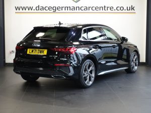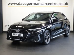 Quality Used 2021 BLACK AUDI A3 Hatchback 1.5 TFSI 35 S line Sportback 5dr Petrol Manual Euro 6 (s/s) (150 ps) (first registered on 2021-11-10) for sale in Altrincham. This fantastic Hatchback car is located at Dace German Car Centre, 309 Manchester Road, Stockport, Cheshire, SK4 5EA – near Altrincham and listed with price tag of £17740.00 GBP.