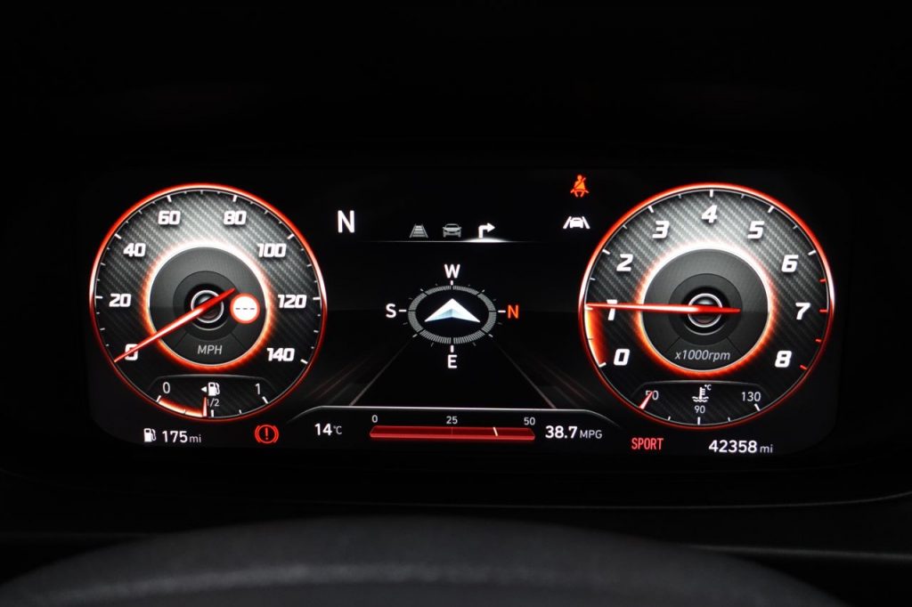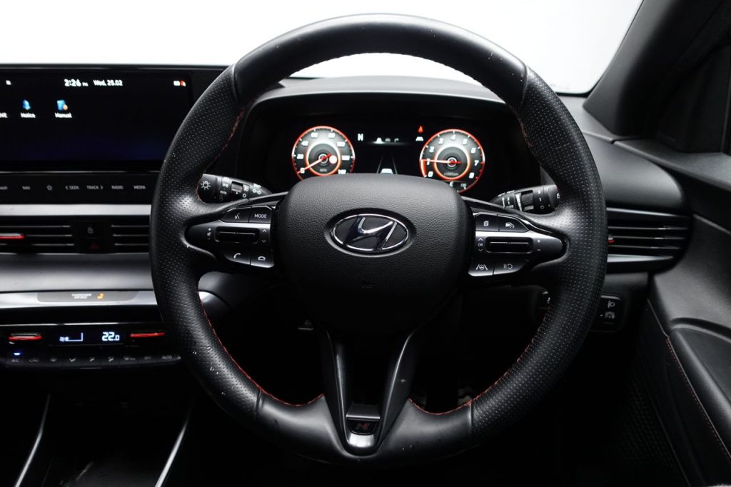 Other features: Adjustable Head Restraints,Adjustable Intermittent Front Windscreen Wipers with Aero Wiper Blade,Armrest – Front with Storage,Automatic Dimming Rear View Mirror,Automatic Windscreen Wipers with Rain Sensor,Climate Control with Automatic De-Fog System for Front Windscreen,Door Handles Interior – Satin Chrome Effect,Driver Seat Height Adjustment,Front Map Reading Lights,Heated Steering Wheel,Interior – Black N Line Exclusive with Red Accents,Interior Light – Cabin and Luggage Compartment,Interior Mood Lighting – Blue,Interior Roof Liner – Black,Leather Wrapped Gear Knob with N Logo,Leather Wrapped Steering Wheel with N Logo,Luggage Board,Seats – 60-40 Split Folding Rear,Steering Column – Height and Reach Adjustable,Steering Wheel Audio and Phone Controls,Sun Visors with Driver and Passenger Illuminated Vanity Mirrors,Supervision Instrument Cluster – 10.25in 17in Alloy Wheels – N Line Exclusive Design,Body Colour Bumpers,Branded Tyres – Hankook,Bumpers – N line Body Kit,Door Mirrors – Electric Adjustment and Heated with Power Folding Function,Door Mirrors with Integrated Indicators – Body Coloured,Electric Windows – Front and Rear with Drivers Anti-Trap and One-Touch Up-Down Control,Exterior Door Handles – Body Coloured,Front Grille – Black N Line Exclusive,Locking Wheel Nuts,Privacy Glass – Rear Side Window and Tailgate,Rear Exhaust – Twin Muffler,Rear Spoiler with Integral LED Brake Light,Tinted Glass,Two Tone Roof – Black,Tyre Repair Kit,Window Surround – Black 6 Airbags – Front – Front Seat Side and Curtain,ABS – Anti-Lock Brake System,Autonomous Emergency Brake,Childproof Rear Door Locks,Cruise Control with Speed Limiter,Deadlocks,Drive Mode Selector,Driver Attention Alert – DAA,ESP – Electronic Stability Programme,ESS – Emergency Stop Signal,Forward Collision Avoidance Assist with Pedestrian and Cycle Detection – FCA,Front Seatbelt Pre-Tensioners,HAC – Hill-Start Assist Control,Height Adjustable Front Seatbelts,Immobiliser,Impact Sensing Auto Door Unlocking,ISOFIX Child Seat Anchorage Points – Rear,Lane Departure Warning System with Lane Keeping Assist,Parking Sensors – Rear,Passenger Airbag De-Activation Switch,Perimeter Alarm,Rear Wiper with Intermittent Function,Rear-View Parking Camera,Remote Central Locking,Seatbelt Reminder – Front and Rear,Smart Key – Keyless Entry with Engine Start-Stop Button,Speed Sensitive Automatic Door Locking,Trip Computer,Tyre Pressure Monitoring System – TPMS,VSM – Vehicle Stability Management Aqua Turquoise,Aurora Grey,Automatic Headlights with Dusk Sensor,Cloth – Black with Flame Red Stitching,Daytime Running Lights – LED,Dragon Red,Electric Power Steering,Elemental Brass,Front Fog Lights,Headlights – LED with Static Cornering,High Beam Assist,Intense Blue,LED Rear Combination Lights,Mangrove Green,Phantom Black,Polar White,Sleek Silver