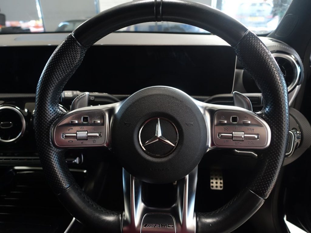 GREAT LOOKING, NEW SHAPE A CLASS AMG – 1 FORMER KEEPER, COMES WITH A FULL SERVICE HISTORY + VIRTUAL COCKPIT DIGITAL DASH DISPLAY + SATELLITE NAVIGATION + REAR VIEW CAMERA + FRONT AND REAR PARKING SENSORS + APPLE CARPLAY / ANDROID AUTO + BLUETOOTH CONNECTIVITY INCLUDING MEDIA STREAMING + ECO STOP/START SYSTEM + DAB DIGITAL RADIO + DUAL ZONE CLIMATE CONTROL + AIR CONDITIONING + LEATHER MULTIFUNCTIONAL LEATHER STEERING WHEEL WITH PADDLE SHIFT GEAR SELECT