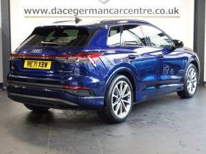 Quality Used 2021 BLUE AUDI Q4 E-TRON SUV 35 Edition 1 SUV 5dr Electric Auto 55kWh (170 ps) (first registered on 2021-12-16) for sale in Altrincham. This fantastic SUV car is located at Dace German Car Centre, 309 Manchester Road, Stockport, Cheshire, SK4 5EA – near Altrincham and listed with price tag of £19970.00 GBP.