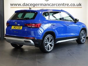 Quality Used 2021 BLUE SEAT ATECA SUV 2.0 TDI XPERIENCE Lux SUV 5dr Diesel DSG 4Drive Euro 6 (s/s) (150 ps) (first registered on 2021-05-19) for sale in Altrincham. This fantastic SUV car is located at Dace German Car Centre, 309 Manchester Road, Stockport, Cheshire, SK4 5EA – near Altrincham and listed with price tag of £19470.00 GBP.