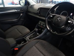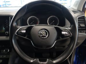 Other features: 2 Reading Lights Front – For Driver and Passenger,2-Spoke Leather Multifunction Steering Wheel,4 Foldable Roof Handles with Clothes Hooks in Rear,Aero Front Windscreen Wipers with Intermitted Function,Air Conditioning – Climate Control Dual Zone,Boot Package – 2 Folding Hooks and Nets,Bottle Holders in Door Panel in the Front – 1.5 Litre Bottle – Driver and Passenger Door Panels,Cargo Element in Boot,Chrome Framed Air Vents,Chrome Interior Door Handles,Decorative Insert – Stars Graphite,Electric Window Control Buttons in Black,Foldable Hooks in the Boot,Folding Tables on Front Seat Backrests,Front Centre Armrest with Storage Compartment – Rear Air Vents and 12v Socket,Glasses Storage Compartment,Glovebox – Illuminated and Cooled,Height Adjustable Driver and Front Passenger Seat,Ice Scraper,Illumination of Luggage Compartment,Light and Rain Sensor with Auto-Dimming Rear View Mirror,Manual Lumbar Support for Front Seats,Net Programme in Boot,Non Smokers Package,Pen Holder,Pollen Filter,Reading Lights – Rear,Rea 17in Alloy Wheels – Aronia Platinum-Matt,Black Roof Rails,Body Coloured Door Mirrors and Door Handles,Door Step in Front with KAROQ Badging,Electric Front and Rear Windows with Child Proof Lock,Electrically Adjustable – Heated – Folding – Auto-Dimming Door Mirrors,Electrically Folding Tow Bar with Adaptor,Heated Rear Windscreen,Light Assistant,Privacy Glass,Scuff Plates in Door Sills,Tyre Repair Kit Airbags – Driver,Alarm with Interior Monitoring – Back Up Horn – Tilt Sensor and SAFE Function,Automatic Door Unlocking Incase of Crash,Automatic Fuel Cut Off Incase of Crash,Colour Multifunction Trip Computer,Cruise Control with Speed Limiter,Driver Fatigue Sensor,Electronic Engine Immobiliser,Electronic Parking Brake with Auto Hold Function,Emergency Rear Braking Signal,ESC Electronic Stability Control incl ABS Anti Lock Braking System,Front – Head – Knee – Curtain – Front Side Airbags,Front Assist,Height Adjustable Front Three-Point Seat Belts with Tensioners,ISOFIX Child Seat Preparation – Outer Rear,Parking Sensors – Front and Rear,Passenger Airbag with Switch Off Function,Pedestrian Monitor,Rear View Camera,Remote Central Locking – with 2 Keys,Seat Belt Reminder – Signalisation and Pretensioner for All Seats,TPMS – Tyre Pressure Monitoring System,Two Tone Horn,Tyre Pressure Display Automatic Headlight Control,Front Fog Lights,Halogen Headlights with LED Daytime Running Lights,Power Steering,Race Blue,Rear Lights – LED,Third Brake Light