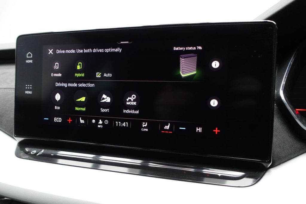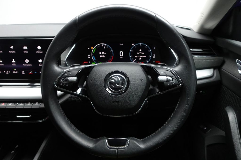 Other features: 2-Spoke Leather Multifunction Steering Wheel,4 Foldable Roof Handles,Aero Front Windscreen Wipers with Intermitted Function,Auto Dimming Rear View Mirror,Beige Dashboard – includes Piano Decorative Inserts,Boot Lid Release from Inside Vehicle,Boot Net Programme and Cargo Elements,Chrome Air Vent Surrounds,Climatronic Dual-Zone Air Conditioning,Decorative Door Sills Front and Rear,Door Handles – Interior in Chrome,Electric Auxiliary Air Heater,Electrically Adjustable Front Seats with Memory Function,Front Centre Armrest,Glasses Storage Compartment,Glove Compartment – Cooled and Illuminated,Heated Front Seats,Height Adjustable for Front Seats,Leather Gear Shift Lever,LED Interior Light Pack,Luggage Compartment Light x2,Lumbar Support for Front Seats,Microsuede Padded Dash Panel,Net Partition,Parcel Shelf – Rolling,Rear Fog Light on One Side,Silver Squares Haptik Decorative Inserts,Simply Clever Pack,Sleep Package,Storage Compartment for Charging Cables under the Luggage Compartment Mat,Sun Visors with Mirror,Te 17in Alloy Wheels – Pulsar Aero – Black,17in Alloy Wheels – Rotare Aero,18in Alloy Wheels – Perseus,18in Alloy Wheels – Perseus Anthracite,19in Alloy Wheels – Becrux,19in Alloy Wheels – Becrux Anthracite,Blind Spot Detection with Electrically Adjustable Heated Folding Driver Side Auto-dimming and Passenger Side Tilt by Reversing Door Mirrors with Memory Function and Boarding Spots,Body Coloured Door Mirrors and Door Handles,Chrome Grille Surround,Chrome Strip in Lower Front Bumper,Chrome Window Surrounds,Electrically Adjustable – Heated – Folding – Auto-Dimming Door Mirrors,Front and Rear Electric Windows,Heated Rear Windscreen,Ice Scraper in Fuel Filler Cap,Integrated Towbar with Adapter,iV Badge on the Tailgate,Rear Privacy Glass,Rear Spoiler,Roof Rails – Chrome,Tyre Repair Kit ABS – Anti-Lock Braking System,ACC – Adaptive Cruise Control,Airbags – Driver,Airbags – Driver Knee,Airbags – Front Passenger,Airbags – Front Side,Alarm with Interior Monitoring – Tilt Sensor and Back Up Horn,Automatic Door Unlocking in Case of Accident,Automatic Fuel Supply Cut-Off in Case of Accident,Automatic Warning Lights in Case of Emergency Braking,Child Lock in Rear Doors,Colour Multifunction Trip Computer,Crew Protection Assistant and Front Central Airbag,Curtain Airbags,Door Locks with Immobiliser,Drive Mode Select,E-Mode Button for Electric-Hybrid Drive,E-Noise Generator for the Electric Drive – Noise is Emitted up to a Speed of 50kmh,Electronic Parking Brake,Front and Rear Parking Sensors with Manoeuvre Assist,Front Assist,Hill Start Assist,ISOFIX on Front Passenger Seat and Outer Rear Seats,Keyless Entry and Start-Stop including Rear Doors,Lane Assist,Rear Window Wiper,Remote Central Locking,Rough Road Package,Sport Button for Hybrid Drive Delivering Maximum System Performance,Three-Point Seat Be 10amp Mains UK 3-pin Charge Cable – Mode 2,16amp AC Charge Cable for Wallbox or Chargepoints – Mode 3,Black Magic,Blind Spot Detection,Brilliant Silver,DCC – Dynamic Chassis Control,Driver Fatigue Sensor,Energy Blue,Extended Warranty – 4 Years or 100000 Miles,Extended Warranty – 4 Years or 80000 Miles,Extended Warranty – 5 Years or 100000 Miles,Full Matrix LED Headlights with AFS – Adaptive Front Light System,Graphite Grey,Head-Up Display,Headlight Washers,High Level 3rd Rear Brake Light,Leather – Black,LED Front Fog Lights,LED Headlights with LED Daytime Running Lights,LED Rear Lights,Light and Rain Sensors,Moon White,Partial Leather-Microsuede – Beige,Partial Leather-Microsuede – Black,Petrol Blue,Power Steering,Race Blue,Rear-View Parking Camera with Full Matrix LED Headlights,Towbar Preparation,Travel Assist,Velvet Red,Wireless Charging