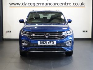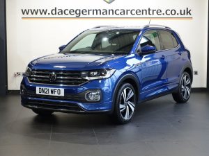 Quality Used 2021 BLUE VOLKSWAGEN T-CROSS SUV 1.0 TSI R-Line SUV 5dr Petrol DSG Euro 6 (s/s) (110 ps) (first registered on 2021-06-29) for sale in Altrincham. This fantastic SUV car is located at Dace German Car Centre, 309 Manchester Road, Stockport, Cheshire, SK4 5EA – near Altrincham and listed with price tag of £16790.00 GBP.