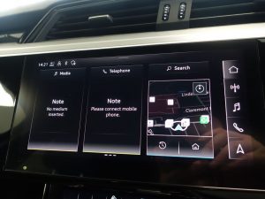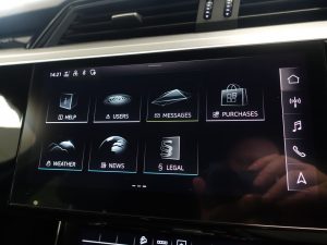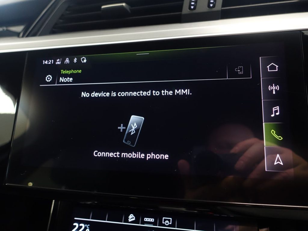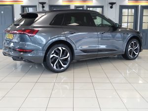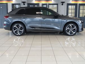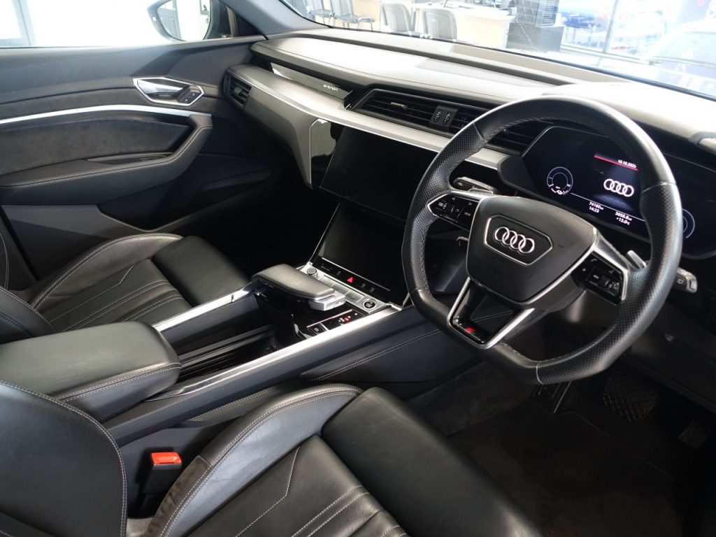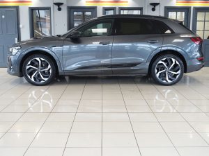 Other features: 2-Zone Automatic Air Conditioning,3-Spoke Flat Bottom Multi-Function Leather Steering Wheel with Paddles for Recuperation,4-Way Lumbar Support for Front Seats,AC and DC Charging Access Point on Drivers Side and Second AC Charging Access Point on Passenger Side,Audi Virtual Cockpit,Auto Dimming and Frameless Rear View Mirror,Cloth Headlining in Black,Comfort Centre Armrest – Front,Electrically Adjustable Front Seats including Memory Function for Drivers Seat,Extended Twin Leather Pack,Front and Rear Floor Mats,Front Sports Seats,Heated Front Seats,Illuminated Door Sill Trims with Aluminium Inlays – Front and Rear with S Logo in Front,Inlays – Darkened Matt Brushed Aluminium,Keyless Go,LED Interior Light Package,Luggage Compartment Cover,Operating Buttons in Black – Glass Look with Haptic Feedback,Power Operated Tailgate,Removable Net Partition,Sun Visors with Illuminated Vanity Mirrors,Tool Kit 21in Alloy Wheels – 9.5J 10-Spoke Rotor Gloss Anthracite Black Audi Sport – Diamond Cut,Anti-Theft Wheel Bolts and Wheel Loosening Warning,Black Roof Rails,Black Styling Pack,Body Coloured Bumpers,Door Mirrors – Black,Door Mirrors – Electrically Adjustable – Heated – Folding – Automatically Dimming with Memory Function with Kerb View Function for Passenger Side,Electric Windows – Front and Rear,Privacy Glass ABS – Anti-Lock Braking System,Active Vehicle Alerting System – AVAS,Airbags – Driver,Anti-Theft Alarm,Audi Drive Select,Audi Pre-Sense Front and Basic,Compact e-tron Charging System,Cruise Control with Speed Limiter,First Aid Kit and Warning Triangle,ISOFIX Child Seat Mounting for Front Passenger Seat with Front Passenger Airbag Deactivation,ISOFIX Child Seat Mounting for Outer Rear Seats,Lane Departure Warning,Parking System Plus with 360 Degree Sensors and Function-On-Demand Preparation,Rear View Camera,Side Airbags – Front and Head Airbag System 11 kW Onboard Charger,Adaptive Air Sport Suspension,Daytona Grey,Household Plug Type G – GB,Industry Plug CEE 32 A-230 V,LED Rear Lights,Mode 3 Type 2-AC Charging Cable 22kW,Progressive Steering