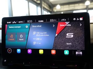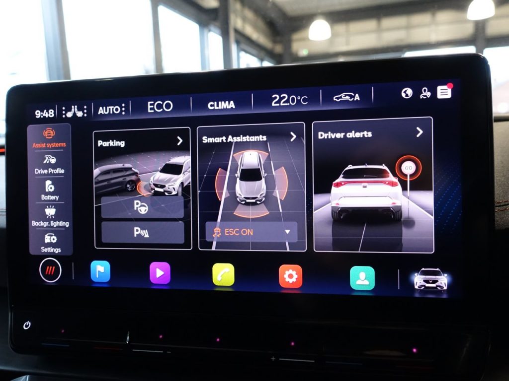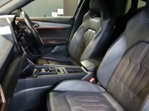 Other features: 60-40 Rear Seats with Central Armrest and Mechanical Seat Release,Auto Dimming Rear View Mirror,Copper and Aluminium Interior Detailing,Front and Rear Head Restraints,Front Centre Armrest,Headlining – Grey,Illuminated Interior Front Door Sills,Illuminated Sunvisor with Mirror,Leather Multi-function Steering Wheel – Heated with Gear Shift Paddles,Leather Multifunction Steering Wheel,Rain Sensing Wipers,Reading Lights – 2x Front – 2x Rear,Smart Wraparound Interior Lighting,Three Zone Climate Control with Control Panel in the Rear,Welcome Lights 19in Alloy Wheels – Exclusive Machined Sport – Matt Black and Silver,Breakdown Kit,Door Mirrors Electrically Adjustable – Folding and Heated,Electric Window – Front,Electrically Adjustable – Folding and Heated Door Mirrors with Memory Function,Electronic Locking Differential with Dynamic Traction Support,Gloss Black Roof Rails and Window Surrounds,Locking Wheel Bolts,Rear Diffuser with Black Simulated Exhaust Pipes,Tinted Rear Windows ABS – Anti-Lock Braking System,Airbag on Driver and Front Passenger Side with Front Passenger Airbag Deactivation,Anti-Theft Alarm,CUPRA Connect – Safety – Service – Remote and Online,Digital Cockpit and Configurable Dashboard,Driver Alert System,Driving Profile Selection,Electronic Parking Brake,Forward Collision Warning with Automatic Braking,Front Side Curtain Airbag,ISOFIX,Kessy – Keyless Entry and Start,Lane Assist,Park Assist – including Front and Rear Sensors,Predictive Adaptive Cruise Control with Speed Limiter,Rear View Camera,Safety and Driving Pack M,Seat Belt Reminder,Tyre Pressure Monitoring System Charging Cable – Mode 2 – 10amp,Charging Cable – Mode 3 – 16amp,Daytime Running Lights with Automatic Headlight Control and Coming-Leaving Home Lights,Dynamic Headlight Range Control,Front Fog Lights with Cornering Function,Graphene Grey,LED Headlight,LED Taillights with Dynamic Indicator,Power Steering