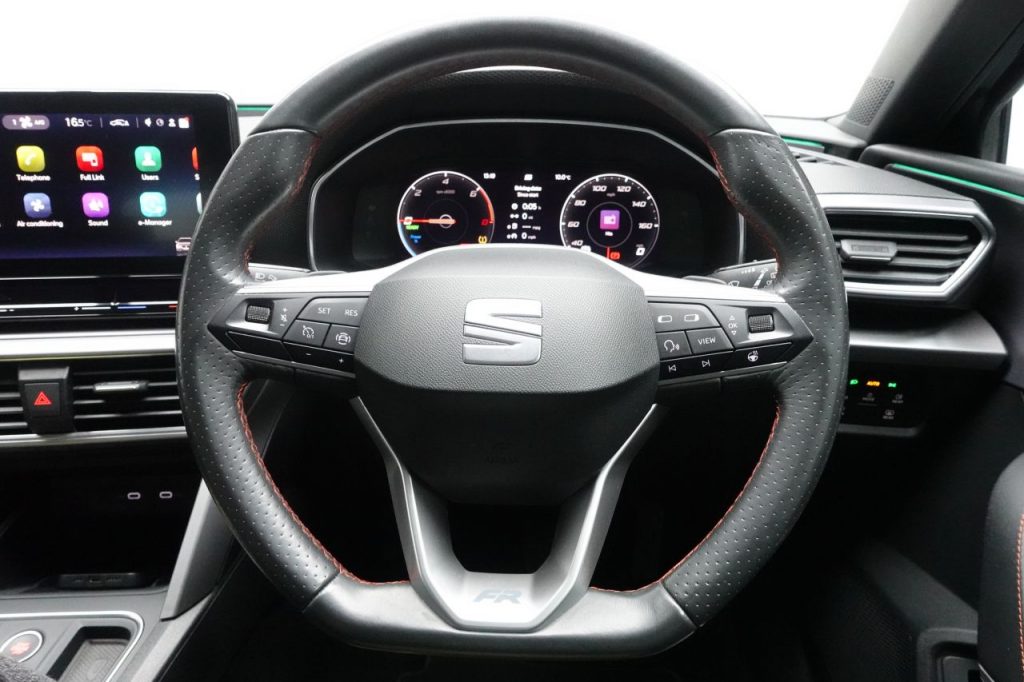 Other features: Ambient Lighting,Ambient Lighting in Door Trim,Auto Dimming Rear View Mirror,Black Interior Roof,Chrome Interior Detailing,Digital Cockpit,Front and Rear Reading Lights – Four,Front Centre Armrest,Front Seat Back Storage Pockets,Heated Leather Flat Bottomed – Perforated Steering Wheel,Height-Adjustable Front and Rear Headrests – with Third Headrest in Rear,Illuminated Front Door Sill,Interior Lighting,Interior Wraparound Lighting,KESSY Go – Keyless Start,Multi Coloured Ambient Lighting,Powered Driver Seat with Memory and Manual Height Adjustment for Passenger,Powered Lumbar Adjustments on Drivers Side – Manual on Passenger Side,Rain Sensing Wipers,Rear Bench Seats with 60-40 Split and Armrest,Rear Fog Light,Sliding Boot Cover,Sunvisors with Illuminated Mirrors,Three-Zone Climate Control,Tool Kit 18in Alloy Wheels – Performance Machined,Dark Tinted Rear Windows,Electric Towing Hook,Electrically Adjustable Folding and Heated Door Mirrors with Memory,Emergency Tyre Repair Kit,FR Sport Bumpers,Front and Rear Electric Windows,Lockable Tailgate,Panoramic Sunroof,Roof Rails – Black,Space-Saving Spare Wheel Anti-Lock Brakes – ABS,Anti-Theft Alarm System – Interior Monitoring – Backup Horn and Towing Protection,Brake Control System – ESC and Brake Booster,Cruise Control with Speed Limiter,Driver and Front Passenger Airbags with Front Passenger Airbag De-Activation – Front Side – Curtain Airbag,Electric Parking Brake,Extended Safety System,Front Assist,ISOFIX Points in Outer Rear Seats with Top Tether Anchorage Points,Lane Keeping System,Park Assist including Front and Rear Parking Sensors,Safety and Driving Pack – Extra Large,Safety and Driving Pack – Large,Safety and Driving Pack – Medium,SEAT Drive Profile,Seatbelt Reminder – Front and Rear,Tiredness Recognition System,Tyre Pressure Monitoring System Charging Cable – Mode 2,Charging Cable Mode 3 – Type 2-3,Desire Red,Electro-Mechanical Power Steering – Speed-Sensitive,Electronic Differential Lock System – XDS – Dynamic Traction Support,Emocion Red,Front LED Fog Lights with Cornering Function,LED Headlights with Dynamic Turn Signals,Magnetic Grey,Microsuede – Soul Black with Lava Red Stitching,Midnight Black,Mystery Blue,Nevada White,Separate Daytime Running Light with Automatic Headlight Control and Automatic Coming Home Feature,Sports Suspension,Start-Stop and Regenerative Braking,Towbar – Pre-Installation with Hook,Urban Silver,White