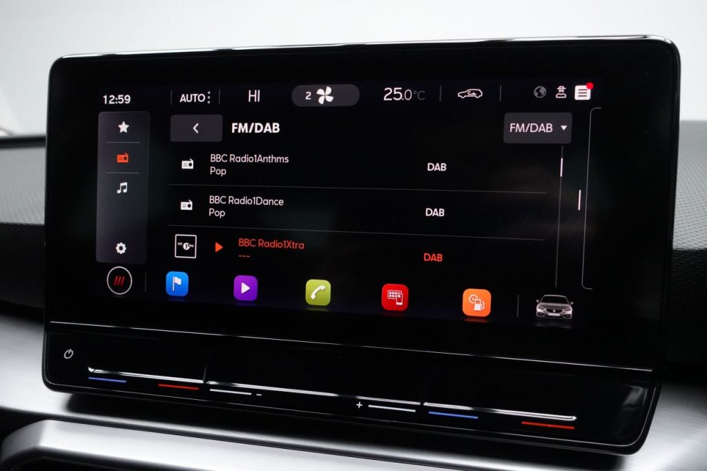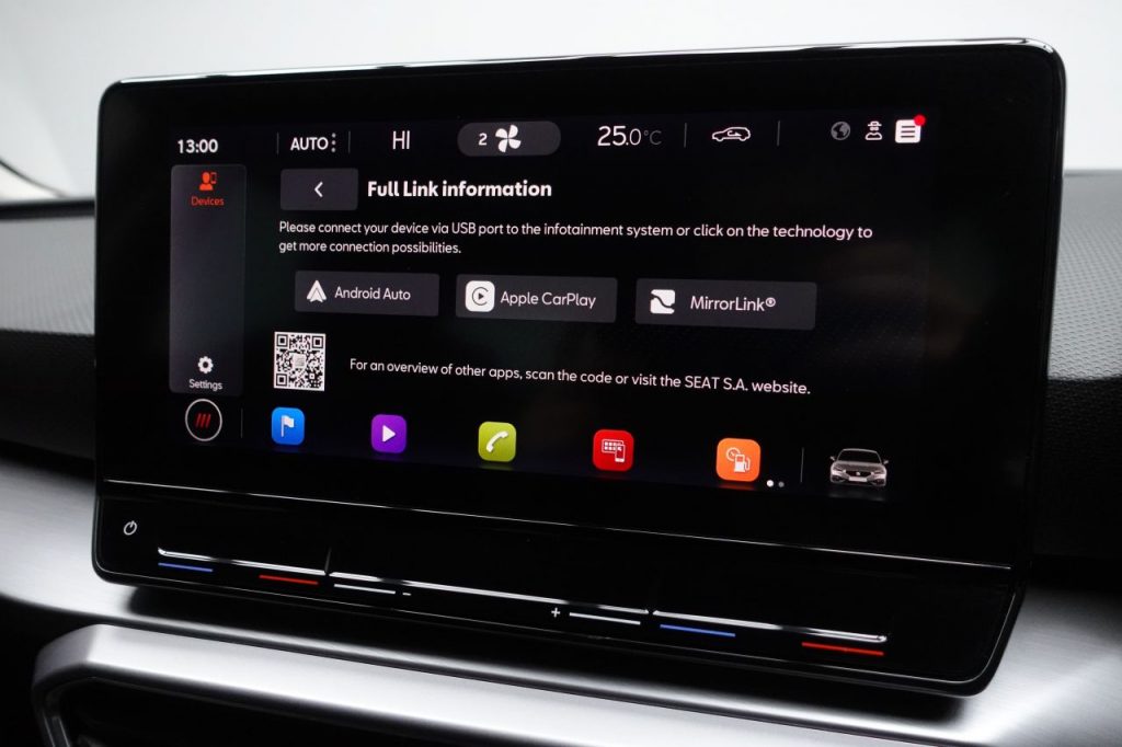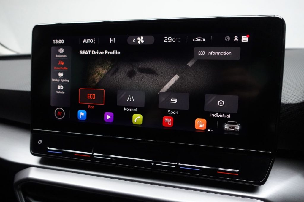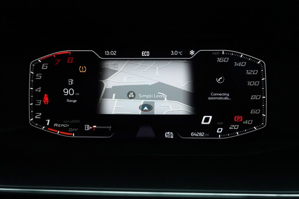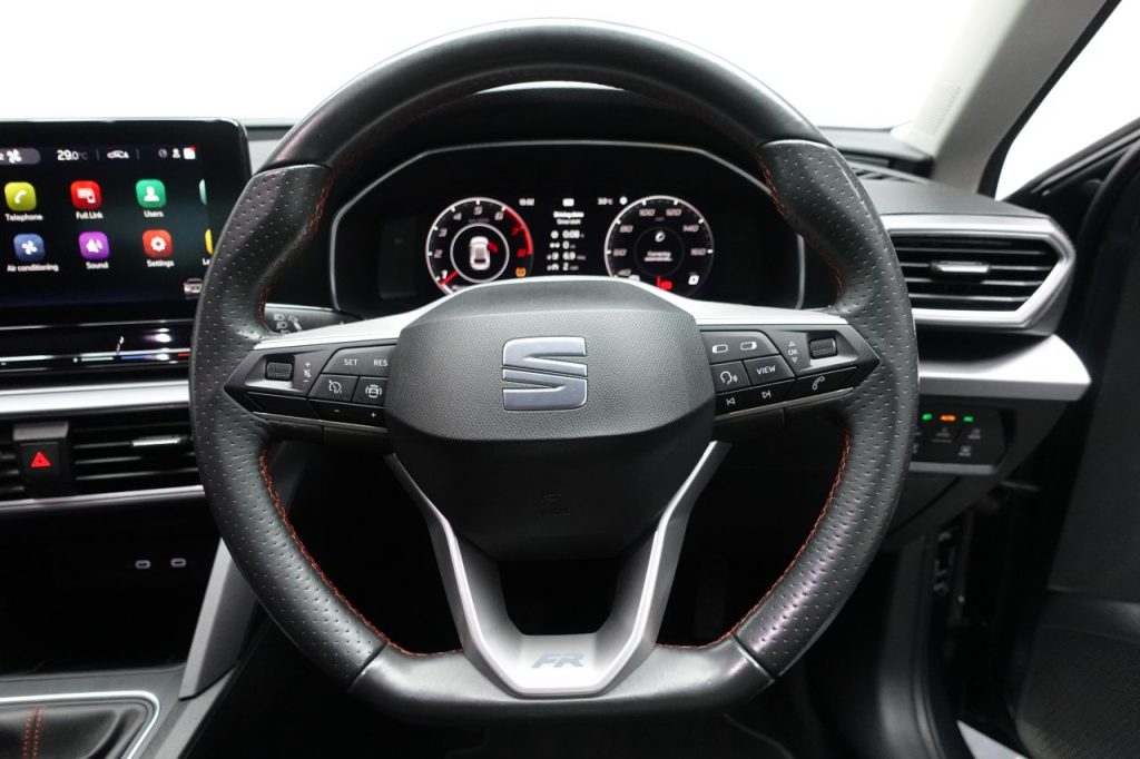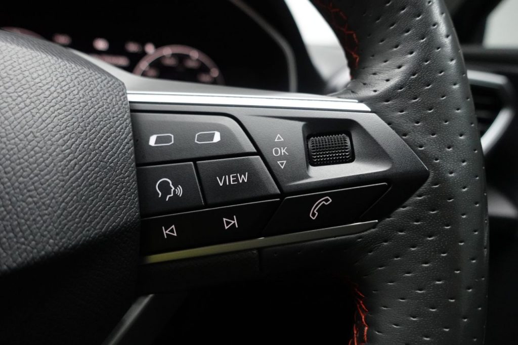 Other features: Ambient Lighting,Auto Dimming Rear View Mirror,Chrome Interior Detailing,Digital Cockpit,Driver and Passenger Seat Manual Height Adjustment,Driver and Passenger Seat with Lumbar Adjustment,Folding Boot Cover,Front and Rear Reading Lights – Four,Front Centre Armrest,Front Seat Back Storage Pockets,Illuminated Front Door Sill,Interior Lighting,Interior Wraparound Lighting,KESSY Go – Keyless Start,Leather Flat Bottomed – Perforated Steering Wheel with Red Stitching and FR Logo,Rain Sensing Wipers,Rear Bench Seats with 60-40 Split and Armrest,Rear Fog Light,Sunvisors with Illuminated Mirrors,Three-Zone Climate Control,Tool Kit 17in Alloy Wheels – Dynamic Bi-Spoke,Dark Tinted Rear Windows,Electric Towing Hook,Electrically Adjustable Folding and Heated Door Mirrors,Emergency Tyre Repair Kit,FR Sport Bumpers,Front and Rear Electric Windows,Lockable Tailgate,Panoramic Sunroof,Space-Saving Spare Wheel Anti-Lock Brakes – ABS,Anti-Theft Alarm System – Interior Monitoring – Backup Horn and Towing Protection,Brake Control System – ESC and Brake Booster,Cruise Control with Speed Limiter,Driver and Front Passenger Airbags with Front Passenger Airbag De-Activation – Front Side – Curtain Airbag,Electric Parking Brake,Extended Safety System,Front Assist,ISOFIX Points in Outer Rear Seats with Top Tether Anchorage Points,Lane Keeping System,Park Assist including Front and Rear Parking Sensors,Safety and Driving Pack – Large,Safety and Driving Pack – Medium,SEAT Drive Profile,Seatbelt Reminder – Front and Rear,Tiredness Recognition System,Tyre Pressure Monitoring System Asphalt Blue,Desire Red,Electro-Mechanical Power Steering – Speed-Sensitive,Emocion Red,Fabric – Two Tone Grey with Lava Red Stitching,Front LED Fog Lights with Cornering Function,LED Headlights with Dynamic Turn Signals,Magnetic Grey,Midnight Black,Nevada White,Separate Daytime Running Light with Automatic Headlight Control and Automatic Coming Home Feature,Sports Suspension,Towbar – Pre-Installation,Urban Silver,White