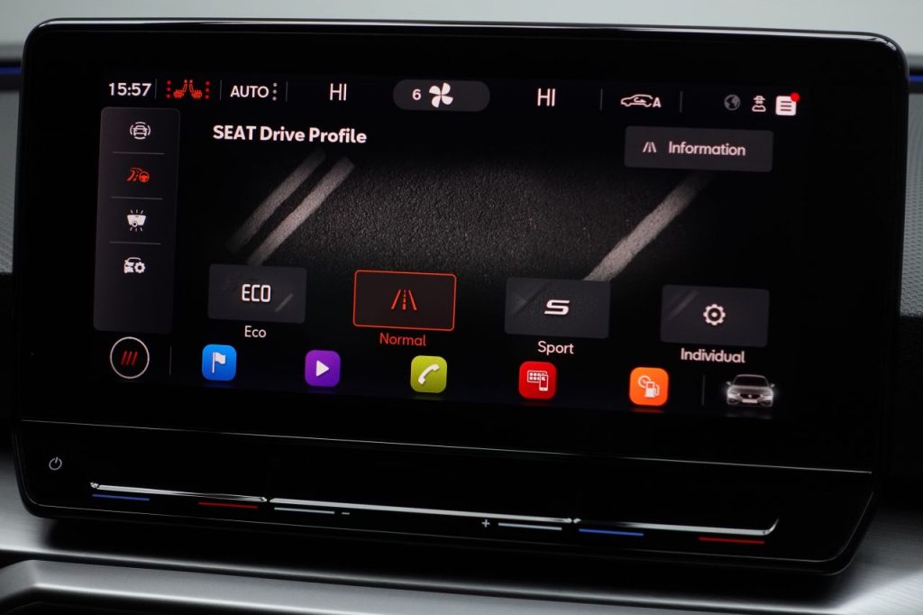 Other features: Ambient Lighting,Ambient Lighting in Door Trim,Auto Dimming Rear View Mirror,Black Interior Roof,Chrome Interior Detailing,Digital Cockpit,Folding Boot Cover,Front and Rear Reading Lights – Four,Front Centre Armrest,Front Seat Back Storage Pockets,Heated Leather Flat Bottomed – Perforated Steering Wheel,Height-Adjustable Front and Rear Headrests – with Third Headrest in Rear,Illuminated Front Door Sill,Interior Lighting,Interior Wraparound Lighting,KESSY Go – Keyless Start,Multi Coloured Ambient Lighting,Powered Driver Seat with Memory and Manual Height Adjustment for Passenger,Powered Lumbar Adjustments on Drivers Side – Manual on Passenger Side,Rain Sensing Wipers,Rear Bench Seats with 60-40 Split and Armrest,Rear Fog Light,Sunvisors with Illuminated Mirrors,Three-Zone Climate Control,Tool Kit 18in Alloy Wheels – Performance Machined,Dark Tinted Rear Windows,Electrically Adjustable Folding and Heated Door Mirrors with Memory,Emergency Tyre Repair Kit,FR Sport Bumpers,Front and Rear Electric Windows,Lockable Tailgate Anti-Lock Brakes – ABS,Anti-Theft Alarm System – Interior Monitoring – Backup Horn and Towing Protection,Brake Control System – ESC and Brake Booster,Cruise Control with Speed Limiter,Driver and Front Passenger Airbags with Front Passenger Airbag De-Activation – Front Side – Curtain Airbag,Electric Parking Brake,Extended Safety System,Front Assist,ISOFIX Points in Outer Rear Seats with Top Tether Anchorage Points,Lane Keeping System,Park Assist including Front and Rear Parking Sensors,SEAT Drive Profile,Seatbelt Reminder – Front and Rear,Tiredness Recognition System,Tyre Pressure Monitoring System Electro-Mechanical Power Steering – Speed-Sensitive,Electronic Differential Lock System – XDS – Dynamic Traction Support,Front LED Fog Lights with Cornering Function,LED Headlights with Dynamic Turn Signals,Magnetic Grey,Microsuede – Soul Black with Lava Red Stitching,Separate Daytime Running Light with Automatic Headlight Control and Automatic Coming Home Feature,Sports Suspension,Start-Stop and Regenerative Braking