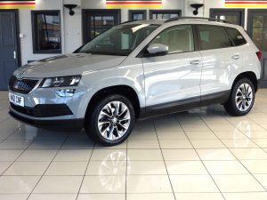 Quality Used 2021 GREY SKODA KAROQ SUV 1.5 TSI ACT SE Drive SUV 5dr Petrol Manual Euro 6 (s/s) (150 ps) (first registered on 2021-05-01) for sale in Wilmslow. This fantastic SUV car is located at Dace Specialist Car Centre Stockport, 417-429 Buxton Road, Stockport, Cheshire, SK2 7HE – near Wilmslow and listed with price tag of £14940.00 GBP.