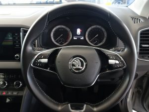 Other features: 2 Reading Lights Front – For Driver and Passenger,2-Spoke Leather Multifunction Steering Wheel,4 Foldable Roof Handles with Clothes Hooks in Rear,Aero Front Windscreen Wipers with Intermitted Function,Air Conditioning – Climate Control Dual Zone,Boot Package – 2 Folding Hooks and Nets,Bottle Holders in Door Panel in the Front – 1.5 Litre Bottle – Driver and Passenger Door Panels,Cargo Element in Boot,Chrome Framed Air Vents,Chrome Interior Door Handles,Decorative Insert – Stars Graphite,Electric Window Control Buttons in Black,Foldable Hooks in the Boot,Folding Tables on Front Seat Backrests,Front Centre Armrest with Storage Compartment – Rear Air Vents and 12v Socket,Glasses Storage Compartment,Glovebox – Illuminated and Cooled,Height Adjustable Driver and Front Passenger Seat,Ice Scraper,Illumination of Luggage Compartment,Light and Rain Sensor with Auto-Dimming Rear View Mirror,Manual Lumbar Support for Front Seats,Net Programme in Boot,Non Smokers Package,Pen Holder,Pollen Filter,Reading Lights – Rear,Rea 17in Alloy Wheels – Aronia Platinum-Matt,Black Roof Rails,Body Coloured Door Mirrors and Door Handles,Door Step in Front with KAROQ Badging,Electric Front and Rear Windows with Child Proof Lock,Electrically Adjustable – Heated – Folding – Auto-Dimming Door Mirrors,Heated Rear Windscreen,Light Assistant,Privacy Glass,Scuff Plates in Door Sills,Steel Space Saver Spare Wheel,Tyre Repair Kit Airbags – Driver,Alarm with Interior Monitoring – Back Up Horn – Tilt Sensor and SAFE Function,Automatic Door Unlocking Incase of Crash,Automatic Fuel Cut Off Incase of Crash,Colour Multifunction Trip Computer,Cruise Control with Speed Limiter,Driver Fatigue Sensor,Electronic Engine Immobiliser,Electronic Parking Brake with Auto Hold Function,Emergency Rear Braking Signal,ESC Electronic Stability Control incl ABS Anti Lock Braking System,Front – Head – Knee – Curtain – Front Side Airbags,Front Assist,Height Adjustable Front Three-Point Seat Belts with Tensioners,ISOFIX Child Seat Preparation – Outer Rear,Parking Sensors – Front and Rear,Passenger Airbag with Switch Off Function,Pedestrian Monitor,Rear View Camera,Remote Central Locking – with 2 Keys,Seat Belt Reminder – Signalisation and Pretensioner for All Seats,TPMS – Tyre Pressure Monitoring System,Two Tone Horn,Tyre Pressure Display Automatic Headlight Control,Front Fog Lights,Halogen Headlights with LED Daytime Running Lights,Meteor Grey,Power Steering,Rear Lights – LED,Third Brake Light