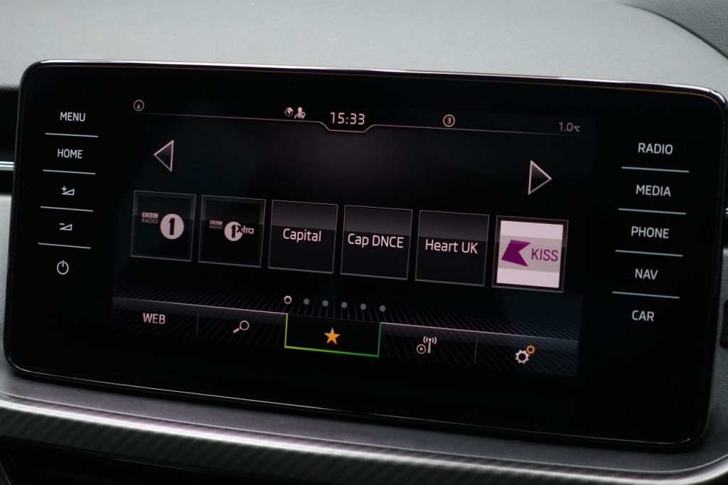 Other features: 3-Spoke Leather Heated Sports Multi-Function Steering Wheel,3-Spoke Sports Leather Multi-Function Steering Wheel,Air Conditioning – Climate Control Dual Zone,Aluminium Pedals,Ambient Lighting Red,Ambient Lighting White,Black Dot Decorative Insert with Red Hot Stamping,Boot Package,Carbon Effect Decorative Inserts,Chrome Interior Door Handles,Double Sided Boot Floor,Electrically Operated Boot,Front Centre Armrest with 2 Rear USB-C Ports,Front Centre Armrest with Stitching,Glasses Storage in Roof Liner,Heated Front Seats with Heated Washer Nozzles,Height Adjustable Driver Seat,Instrument Cluster – Monte Carlo,Keyless Start-Stop,Manual Air Conditioning with Pollen Filter,Manual Lumbar Support for Front Seats,Net Partition,Rain and Light Assistant with Auto-Dimming Rear View Mirror,Reading Lights in the Front – For Driver and Passenger,Rear Centre Armrest,Seats – Electrically Adjustable Drivers Seat,Seats – Front Passenger Height Adjustment,Simply Clever Package,Smokers Pack with Ashtray and Multimedia Holder,Sun 18in Alloy Wheels – Vega in Black,Anti-Theft Locking Wheel Bolts,Black Roof Spoiler,Door Handles – Body Coloured,Door Mirrors – Black,Door Mirrors – Electrically Folding,Electrically Folding Tow Bar,Electrically Folding Tow Bar with Adaptor,Exterior Design Pack,Front and Rear Electric Windows,Heated Windscreen,Privacy Glass,Radiator Grille – Black,Rear Diffuser – Black,SKODA Lettering on Tailgate in Black,Temporary Steel Space Saver Spare Wheel,Tinted Windows ABS – Anti-Lock Braking System,Airbags – Driver Knee,Alarm,Crew Protection Assistant and Rear Side Airbags,Cruise Control,Curtain Airbags,Drivers and Front Passenger Air Bag,Front Assist,Front Head and Side Airbags,HHC – Hill Hold Control,ISOFIX for Rear Passenger Seat,Keyless Entry and Start-Stop System,Lane Assist,Multifunction Trip Computer,One Tone Horn,Parking Sensors – Rear,Passenger Airbag Switch Off Function,Rear View Camera,Remote Central Locking,Remote Central Locking with SAFE Function,Seatbelt Reminder,Sport Chassis Control with Drive Mode Select for Towing ACC – Adaptive Cruise Control,Automatic Headlight Control,Basic LED Headlights with LED Daytime Running Lights,Black Magic,Brilliant Silver,Candy White,Cloth – Black,Drive Mode Select,Driver Fatigue Sensor,Energy Blue,Extended Warranty – 4 Years or 100000 Miles,Extended Warranty – 4 Years or 80000 Miles,Extended Warranty – 5 Years or 100000 Miles,Front Fog Lights,Headlights – Washers,High Beam Control,Meteor Grey,Moon White,Park Assist,Parking Sensors – Front and Rear,Power Steering,Quartz Grey,Race Blue,Rear LED Lights with Dynamic Indicators – High Functionality,Speed Limiter,Towbar Preparation,Travel Assist,USB C Port by Rear View Mirror – Charging Only,Velvet Red,Voice Control,Wireless Charging,Wireless SmartLink for Apple Car Play