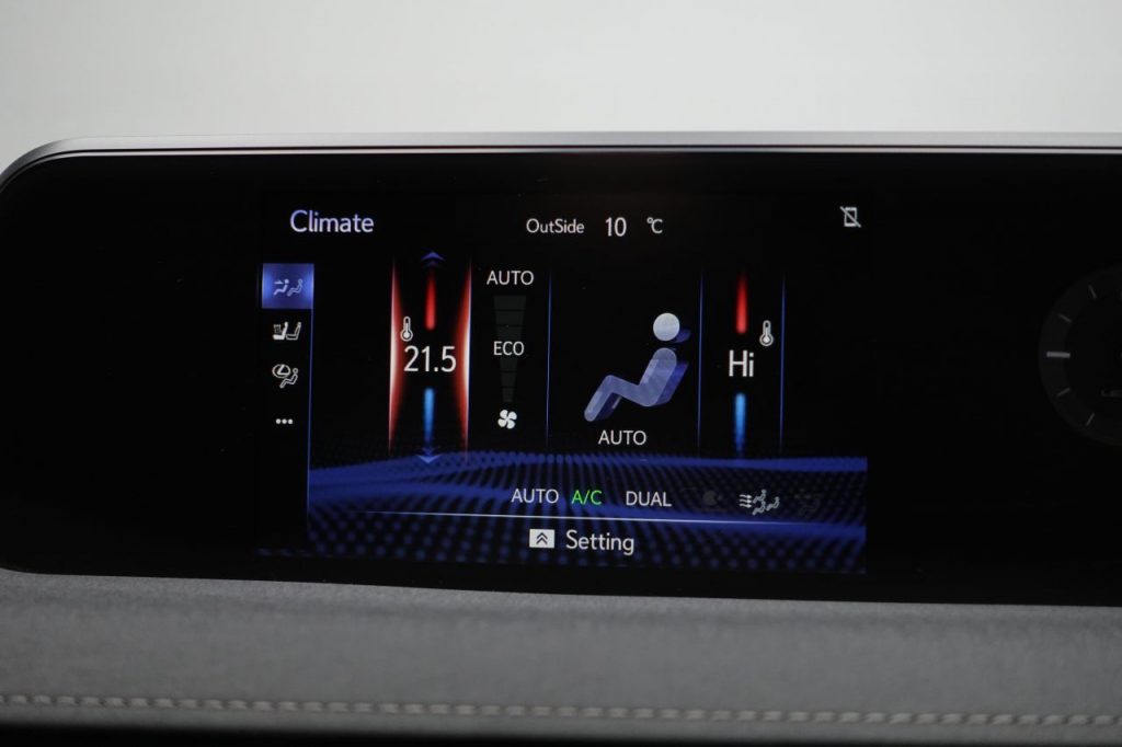 Other features: 2 Cup Holders in Front Centre Console,2-Way Electrical Lumbar Adjustment for Driver,2x Folding Shopping Bag Hooks in Boot,2x Sun Visors with Vanity Mirror and Lamp,4x Tie Down Hooks in Boot,7in TFT Meter,Centre Armrest with Storage – 4.4 Litre,Driver and Passenger 8-Way Electrically Adjustable Front Seats,Driver and Passenger Door Pocket with Bottle Holder,Dual Zone Climate Control Air Conditioning System,Glove Box – 7.2 Litres,Japanese Washi Paper Instrument Panel,Lane Change Flasher Function,Leather Gear Lever,LED Interior Illumination,Map Pockets in Rear of Passenger Front Seats,Power Adjustable Leather Steering Wheel,Push Button Start,Rain Sensitive Windscreen Wipers,Rear Air Vents,Rear Armrest with 2 Cup Holders,Seats – 60-40 Split Folding Rear,Storage Tray Under Audio Panel,Textile Carpet Mats 17in Alloy Wheels,Door Mirrors – Electrically Adjustable and Heated,Front and Rear One-Touch Automatic Power Windows with Jam Protection,Light Green UV Glass – Rear Door – Side Glass,Locking Wheel Nuts – Thatcham Approved,Roof Rails – Aluminium 2 x ISOFIX Child Rear Seat Restraints,2 x Remote Key Fobs,ABS – Anti-Lock Braking System,Adjustable Seat Belt Anchor Points,Analogue Lexus Clock,Anti Theft System – Alarm – Intrusion Sensor – Tilt Sensor – Glass Breakage Sensor and Engine Immobiliser,ASC – Active Sound Control,BAS – Brake Assist System,Curtain Shield Airbags – Front and Rear,Driver and Front Passenger 2-Stage Airbags,Driver and Front Passenger Knee Airbags,Driver and Front Passenger Side Airbags,Driving Modes – Normal – Eco – Sport,EBD – Electronic Brakeforce Distribution,ECB – Electronically Controlled Braking,EPB – Electronic Parking Brake,Front and Rear Parking Sensors with Intelligent Clearance Sonar ICS,Front Seat Belt with Pre-Tensioners – Force Limiter and Tention Reduction 3-Point with Active Safety Link to PCS,Hill Start Assist Control,Lexus Safety System Plus,Passenger Airbag Cut Off Switch,Rear Outer Seat Belt with Pre-Tensioners Force Limiter and Tention Reduction,Reversing Camera with Back Guide Lines,Secondary Collision Brake – 3 Pin to Type 2 AC Cable,Bi-LED Headlights with Auto High Beam System – AHB,EPS – Electric Power Steering – Speed Sensitive,Front and Rear Performance Dampers,Headlight Cleaners,LED Daytime Running Lights,LED Front and Rear Fog Lights,Type 2 – Mode 3 AC Charging Cable